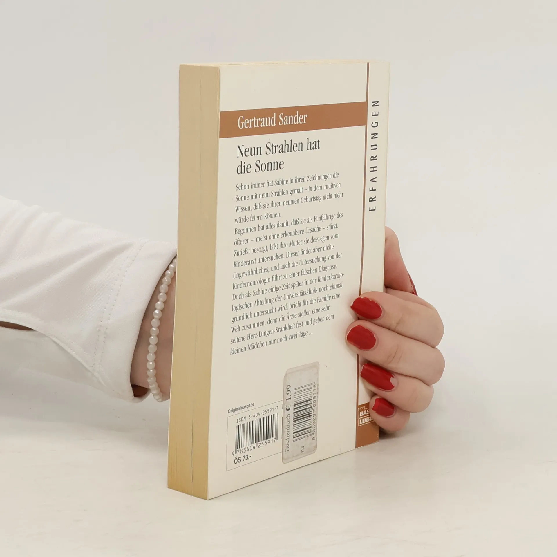 Schon immer hat Sabine in ihren Zeichnungen die Sonne mit neun Strahlen gemalt - in dem intuitiven Wissen, daß sie ihren neunten Geburtstag nicht mehr würde feiern können. Begonnen hat alles damit, daß sie als Fünfjährige des öfteren - meist ohne erkennbare Ursache - stürzt. Zutiefst bersorgt, läßt ihre Mutter sie deswegen vom Kinderarzt untersuchen. Dieser findet aber nichts Ungewöhnliches, und auch die Untersuchung der Kinderneurologin führt zu einer falschen Diagnose. Doch als Sabine einige Zeit später in der Kinderkardiologischen Abteilung der Universitätsklinik noch einmal gründlich untersucht wird, bricht für die Familie eine Welt zusammen, denn die Ärzte stellen eine sehr seltene Herz-Lungen-Krankheit fest und geben dem kleinen Mädchen nur noch zwei Tage ...