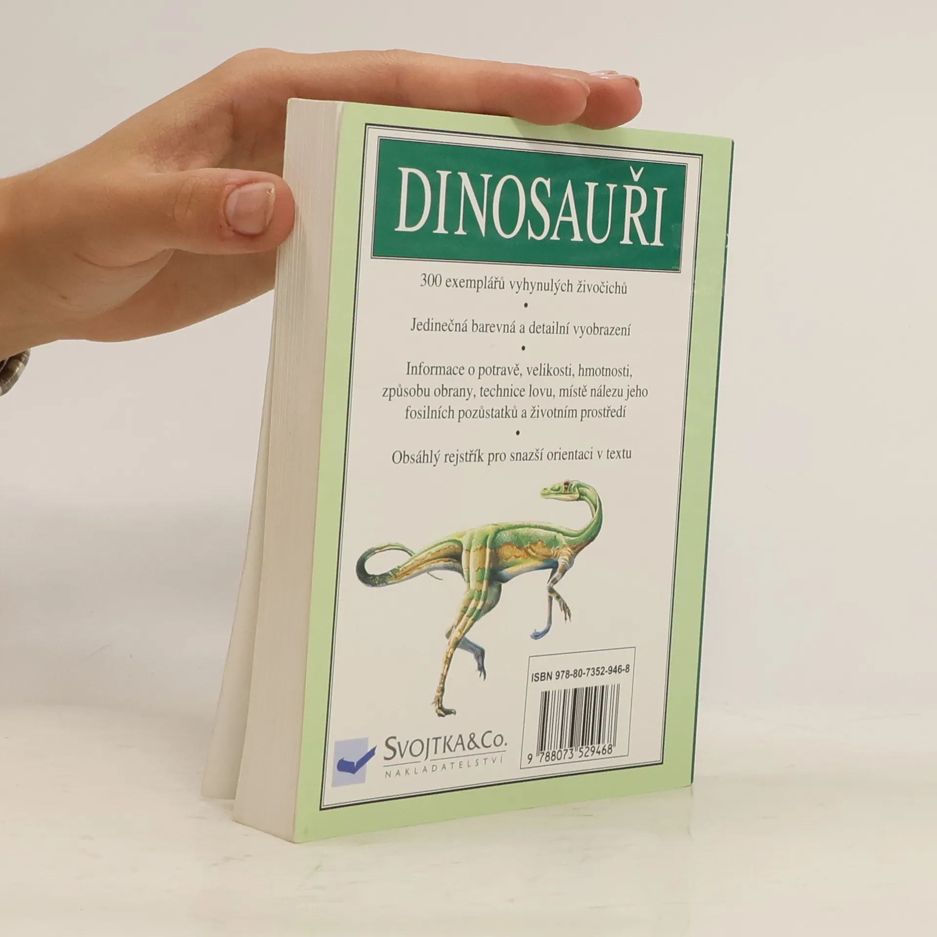 300 exemplářů vyhynulých živočichů. Jedinečná barevná a detailní vyobrazení. Informace o potravě, velikosti, hmotnosti, způsobu obrany, technice lovu, místě nálezů jeho fosilních pozůstatků a životním prostředí. Obsáhlý rejstřík pro snazší orientaci v textu.