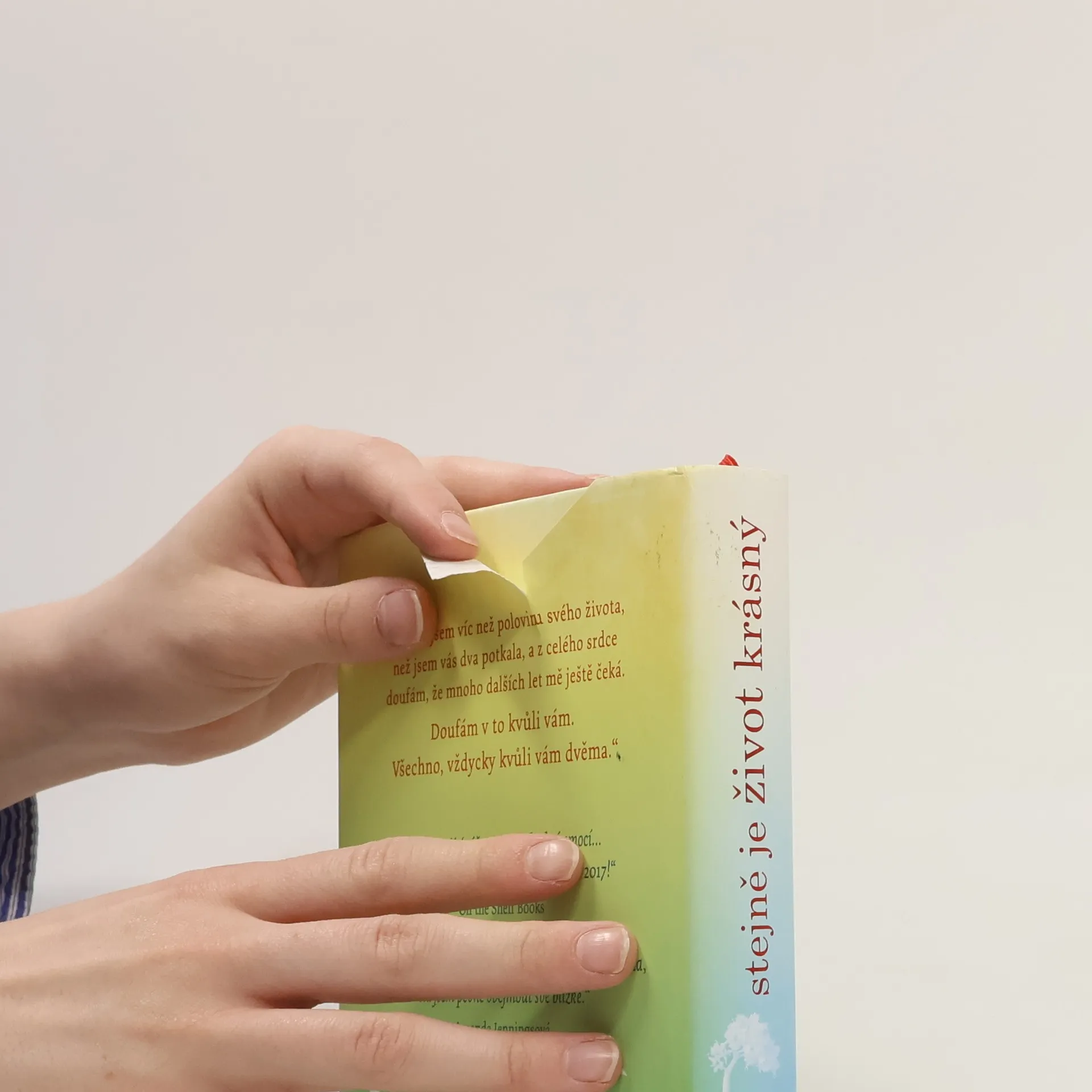 „Prožila jsem víc než polovinu svého života, než jsem vás dva potkala, a z celého srdce doufám, že mnoho dalších let mě ještě čeká. Doufám v to kvůli vám. Všechno, vždycky kvůli vám dvěma.“ Abi Cooperová by měla prožívat svůj „pohádkový konec“. Zvítězila nad rakovinou a chystá se co nejlépe využít svou druhou šanci. Jenže během její nemoci se rodina rozpadla. Manžel John udělal několik rozhodnutí, jejichž následky ho pěkně potrápí, a i dospívající syn Seb má své tajemství. Soundtrack k románu tvoří Abiin „playlist na přežití“. Stejně je život krásný je dojemný a povznášející příběh o tom, co se stane, když se Abi snaží dát rodinu znovu dohromady – a proč život a láska stojí za to, aby za ně člověk bojoval.