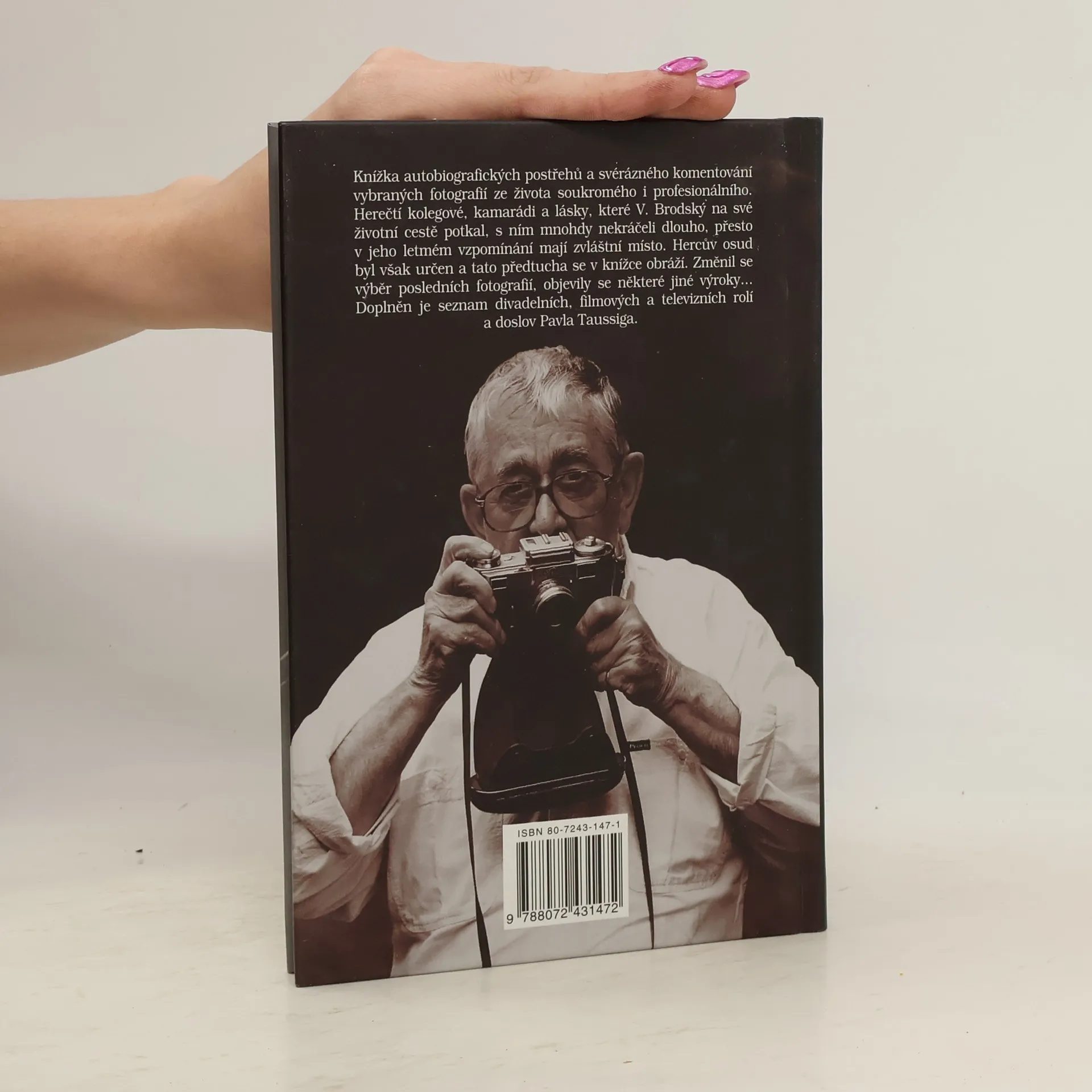 Autobiografické postřehy a svérázné komentování vlastních fotografií ze života soukromého i profesionálního. Herečtí kolegové, kamarádi a lásky, které V. Brodský na své životní cestě potkal, s ním mnohdy nekráčeli dlouho, přesto v jeho letmém vzpomínání mají zvláštní místo. Osud V. B. byl však určen a tato předtucha se v knížce obráží. Změnil se výběr posledních fotografií, objevily se některé jiné výroky Kniha je doplněna seznamem divadelních, filmových a televizních rolí Vlastimila Brodského a doslovem Pavla Taussiga.