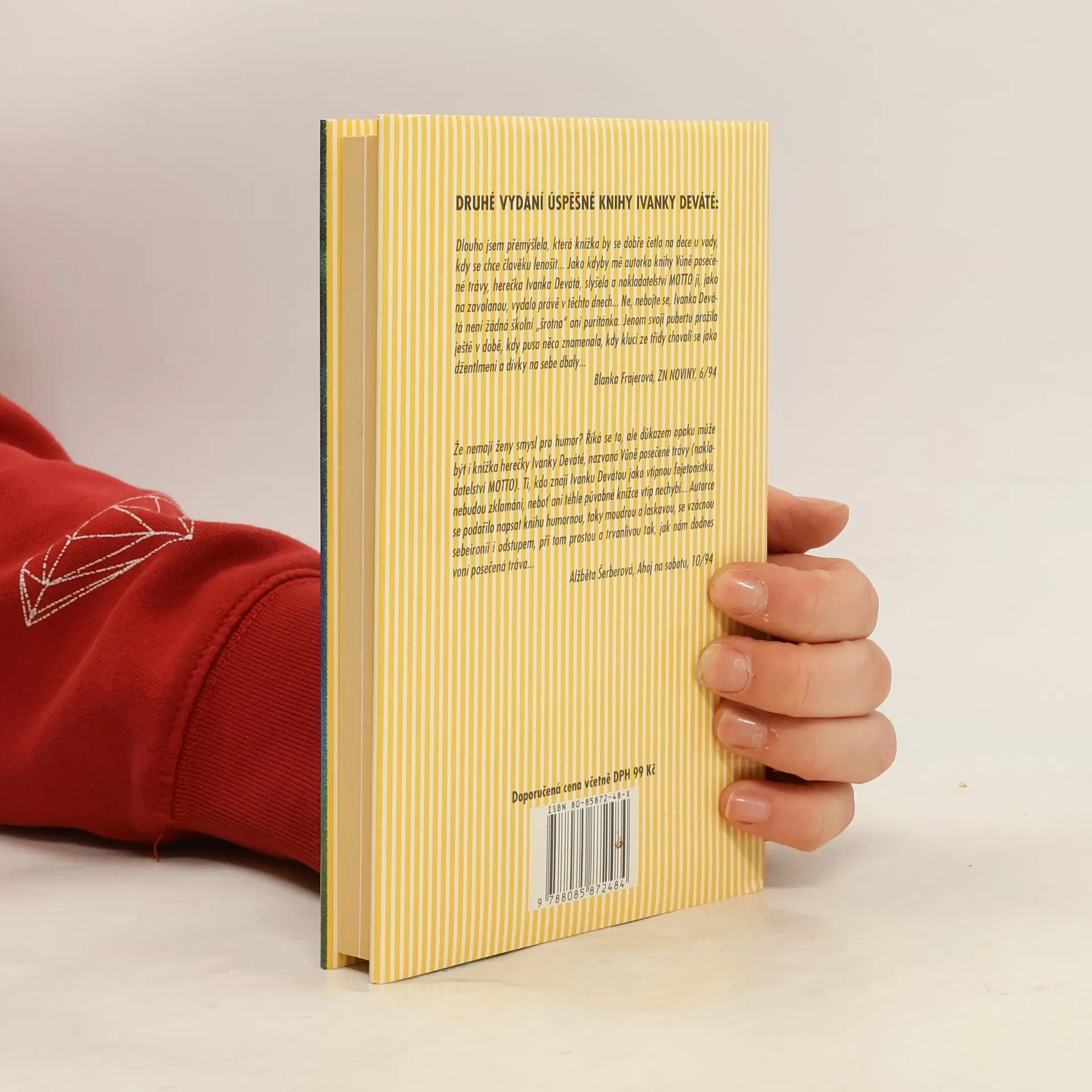Znovu vydaná sbírka fejetonů od populární herečky Ivanky Deváté dokazuje, že ten, kdo říká, že ženy nemají smysl pro humor, se hluboce mýlí. Protože právě této půvabné knížce vtip rozhodně nechybí. Autorce se podařilo napsat knihu nejen humornou, ale také moudrou, laskavou a obecně platnou tak, jak nám dodnes voní čerstvě posečená tráva.