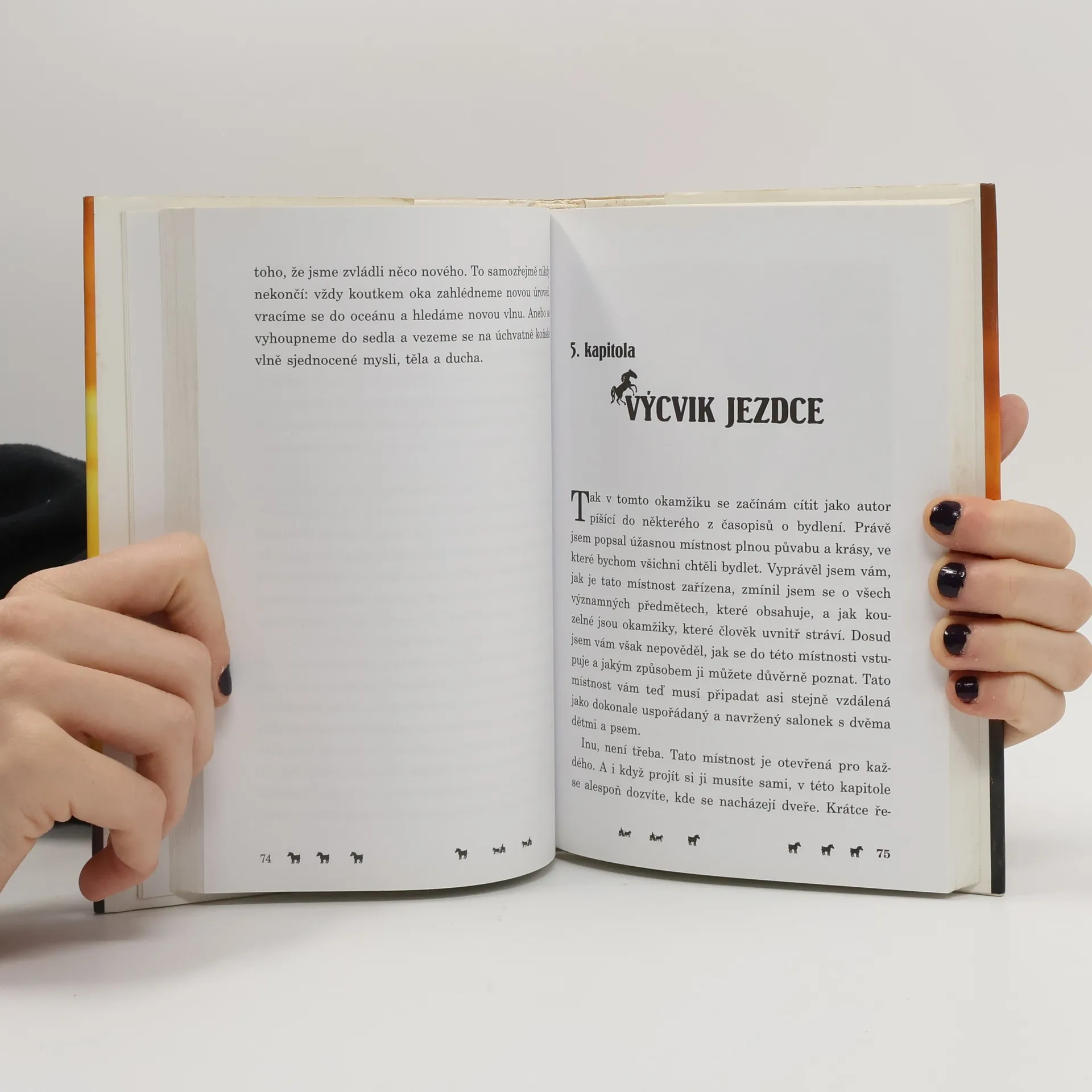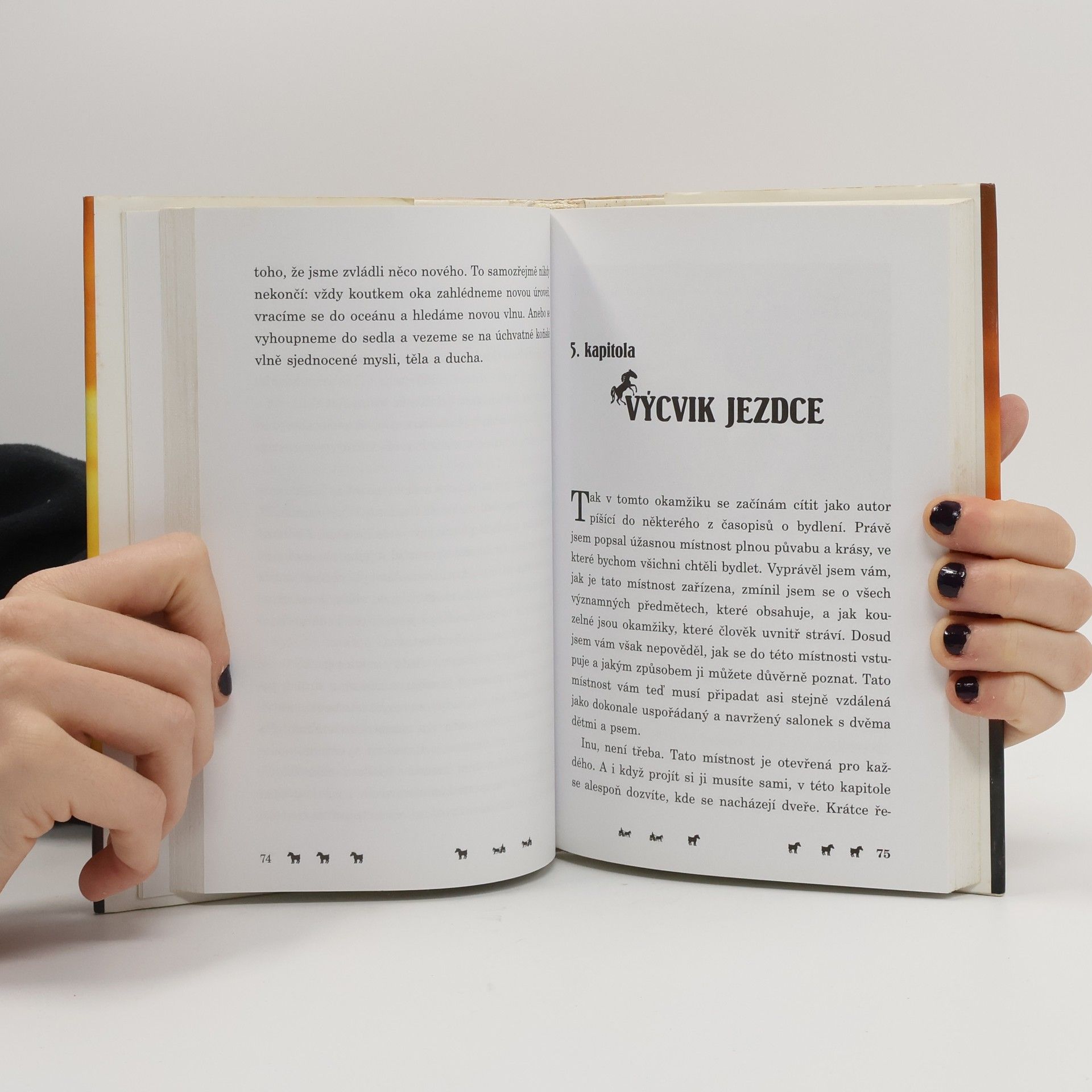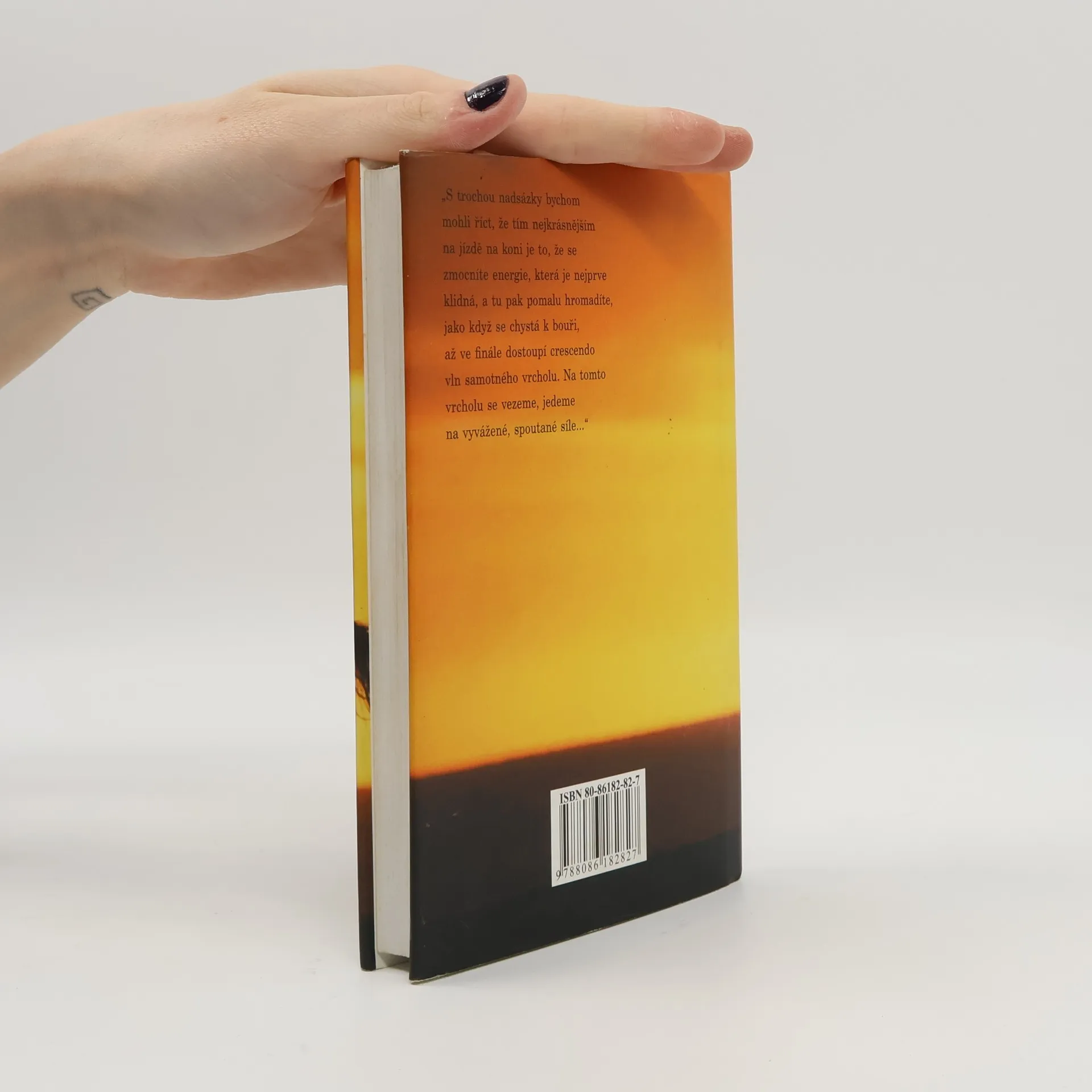 Chris Irwin, známý kanadský „zaříkávač koní“ a profesionální trenér, strávil více než dvacet let prací s koňmi. Ve své objevné knize sdílí inspirativní a praktické rady, postřehy a příklady ze své bohaté zkušenosti. Představuje vlastní metodu nerezistenčního, tedy nenásilného výcviku koní. Po letech práce se stovkami koní odhalil tajemství komunikace s těmito zvířaty, umění naslouchat a efektivně je ovládat. Kůň vnímá svět jinak než člověk, a proto je důležité mluvit s ním jazykem, kterému rozumí. Porozuměním myšlení koně a jeho řeči těla můžeme ovlivnit jeho chování a získat nad ním kontrolu. Irwin, expert na psychologii koní, ukazuje jak začínajícím jezdcům, tak trenérům, majitelům koní a veterinářům, jak empaticky a trpělivě komunikovat, osvojit si vyváženost a sebejistotu při jízdě. Dále objasňuje účinky hipoterapie, která pomáhá lidem s různými problémy dosáhnout hlubokých změn ve svém životě prostřednictvím vztahu s koněm. Kniha končí dodatkem s podrobnými metodickými instrukcemi pro nerezistenční trénink koní.