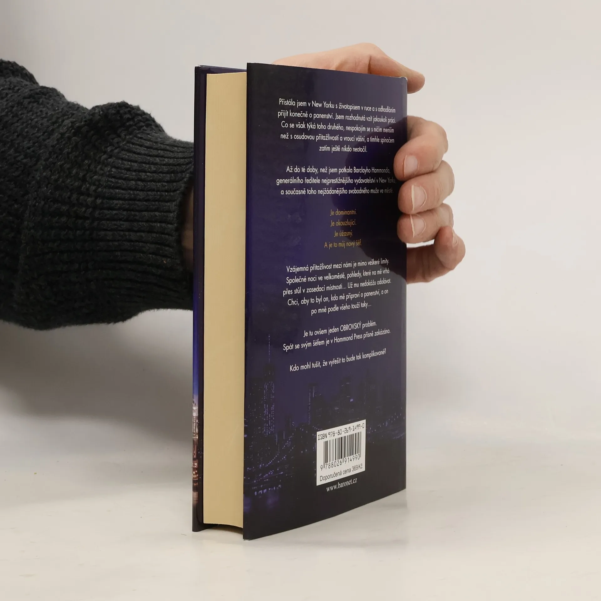 Přistála jsem v New Yorku s životopisem v ruce a odhodláním přijít konečně o panenství. Jsem rozhodnutá vzít jakoukoli práci. Co se však týká toho druhého, nespokojím se s ničím menším než s osudovou přitažlivostí a vroucí vášní, a tímhle spínačem zatím ještě nikdo neotočil. Až do té doby, než jsem potkala Barclayho Hammonda, generálního ředitele nejprestižnějšího vydavatelství v New Yorku, a současně toho nejžádanějšího svobodného muže ve městě. Je dominantní. Je okouzlující. Je úžasný. A je to můj nový šéf. Vzájemná přitažlivost mezi námi je mimo veškeré limity. Společné noci ve velkoměstě, pohledy, které na mě vrhá přes stůl v zasedací místnosti… Už mu nedokážu odolávat. Chci, aby to byl on, kdo mě připraví o panenství, a on mě podle všeho chce taky… Je tu ovšem jeden OBROVSKÝ problém. Spát se svým šéfem je v Hammond Press přísně zakázáno. Kdo mohl tušit, že vyřešit ho bude tak komplikované?