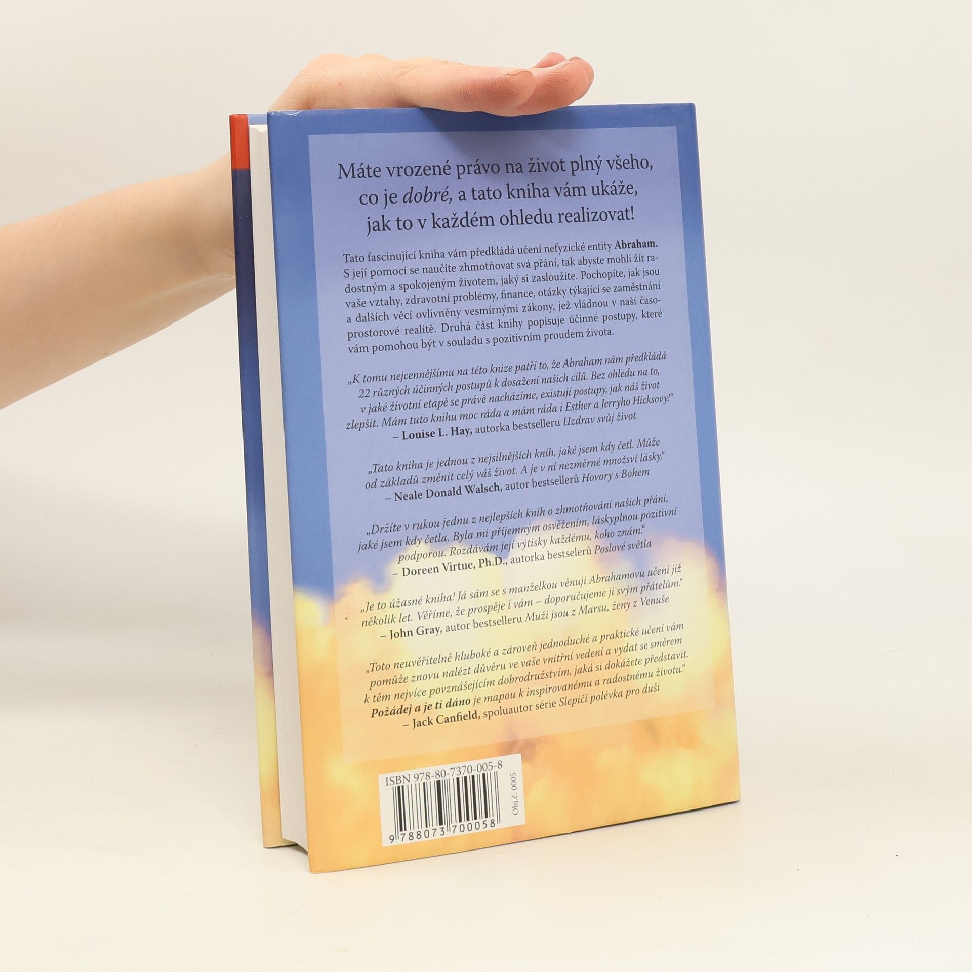 Tato fascinující kniha přináší učení nefyzické entity Abraham, které vás naučí zhmotňovat svá přání a žít radostný a spokojený život. Pochopíte, jak vesmírné zákony ovlivňují vaše vztahy, zdraví, finance a kariéru. Druhá část knihy nabízí účinné postupy, které vás uvedou do souladu s pozitivním proudem života. Obsahuje 22 různých metod pro dosažení cílů, které lze aplikovat v jakékoli životní etapě. Louise L. Hay, autorka bestselleru Uzdrav svůj život, vyzdvihuje cennost těchto postupů a vyjadřuje svou lásku k autorům. Neale Donald Walsch, autor Hovorů s Bohem, popisuje knihu jako jednu z nejsilnějších, schopnou zásadně změnit váš život díky nezměrnému množství lásky. Doreen Virtue, Ph.D., ji považuje za nejlepší knihu o zhmotňování přání, která ji osvěžila a pozitivně podpořila. John Gray, autor Muži jsou z Marsu, ženy z Venuše, doporučuje učení Abraham svým přátelům. Jack Canfield, spoluautor série Slepičí polévka pro duši, zdůrazňuje, že toto jednoduché a praktické učení vám pomůže obnovit důvěru ve vaše vnitřní vedení a nasměrovat vás k povznášejícím dobrodružstvím.