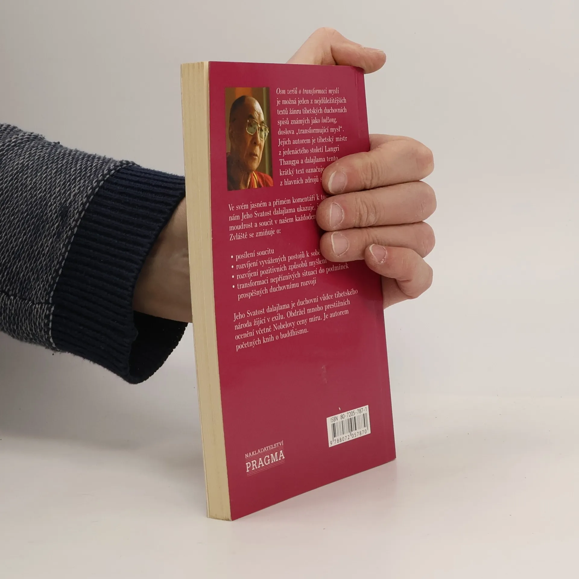 Osm veršů o vyvíjení a transformaci vašeho života. Jeden z nejdůležitějších textů žánru tibetských duchovních spisů známých jako lodžong. Jejich autorem je tibetský mistr z jedenáctého století Langri Thangpa a dalajlama tento krátký text označuje za jeden z hlavních zdrojů své inspirace. Ve svém jasném a přímém komentáři k tomuto učení nám Jeho Svatost dalajlama ukazuje, jak rozvíjet moudrost a soucit v každodenním životě.