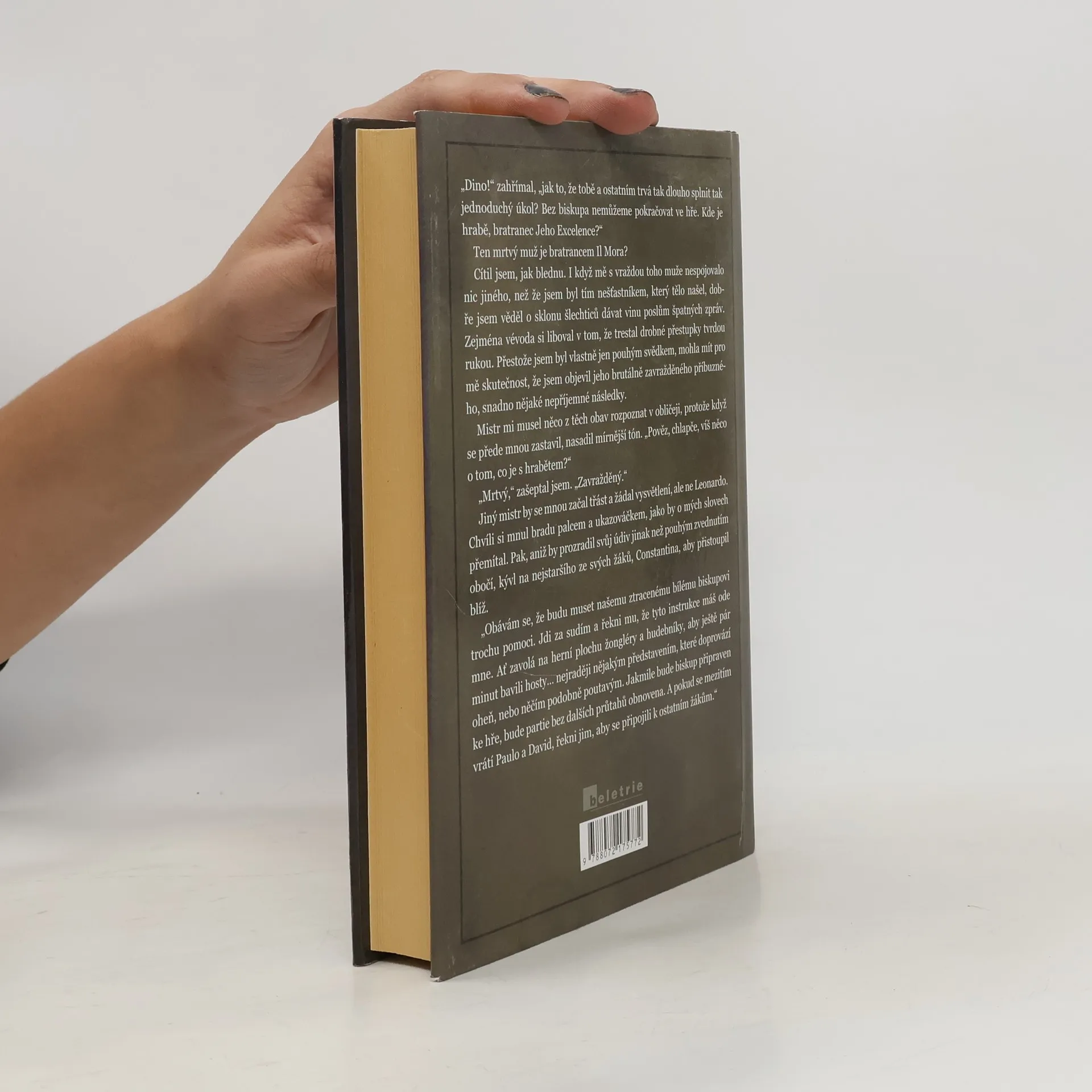 Píše se rok 1483 a na dvoře milánského vévody Ludovica se koná slavnost na počest francouzského vyslance. Vévodův dvorní inženýr a malíř Leonardo da Vinci přichystal na přání svého pána šachovou partii, ve které místo figur vystupují sami dvořané. Její průběh však naruší nalezení mrtvoly Ludovicova bratrance. Leonardo dostane za úkol odhalit pachatele tohoto zločinu. Měl hrabě smrtelného nepřítele mezi svými příbuznými nebo snad vadil někomu z Francouzů? A vzhledem k tomu, že byl kvůli slavnosti převlečen do kostýmu biskupa, není možné, že se měl stát obětí někdo jiný? Velký malíř se pouští do vyšetřování za pomoci svého žáka Dina, který se může nenápadně pohybovat po hradu a sbírat pro mistra informace. Díky své vynalézavosti i pozorovacím schopnostem Leonardo postupně odhaluje síť temných tajemství, netuší ovšem, že jedno takové skrývá i jeho věrný pomocník…