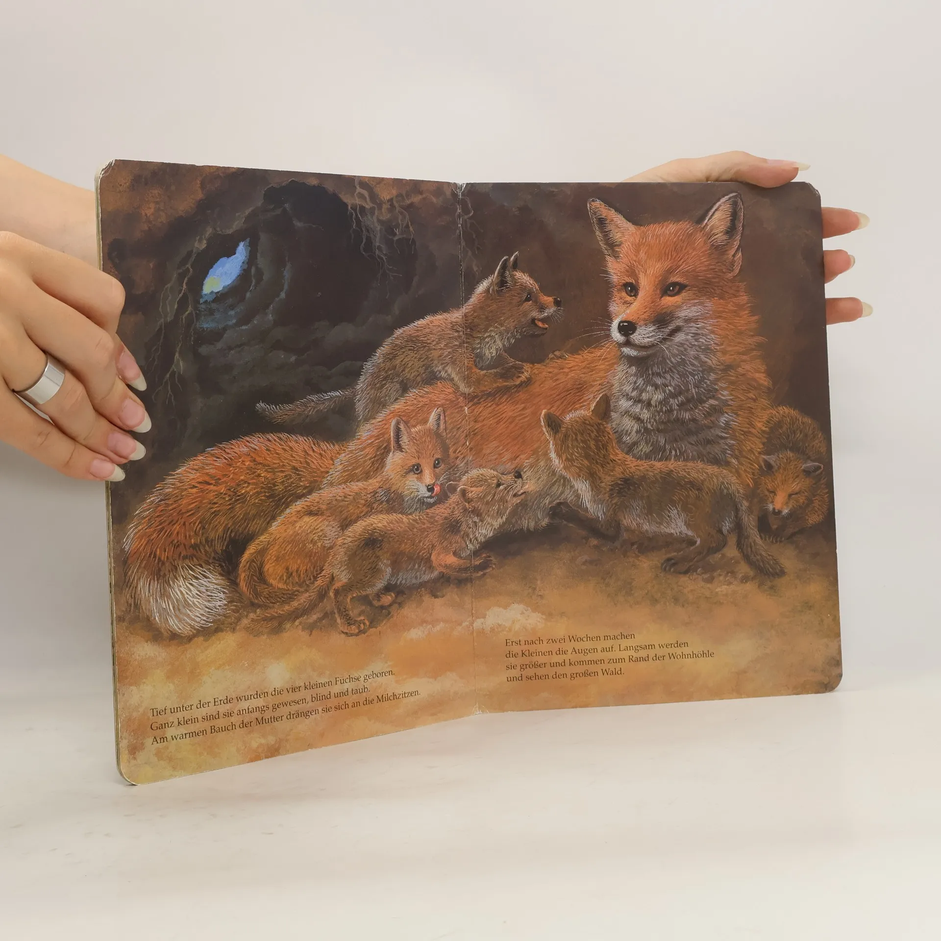 Übersichtlich und in einfachen Worten wird hier die Entwicklung verschiedener Tierkinder beschrieben: Enten, Schnecken, Frösche, Füchse, Rotkehlchen, Kaninchen und Mäuse werden an ganz unterschiedlichen Orten geboren und brauchen alle Pflege, bis sie das erste Mal ihr Nest verlassen können.
