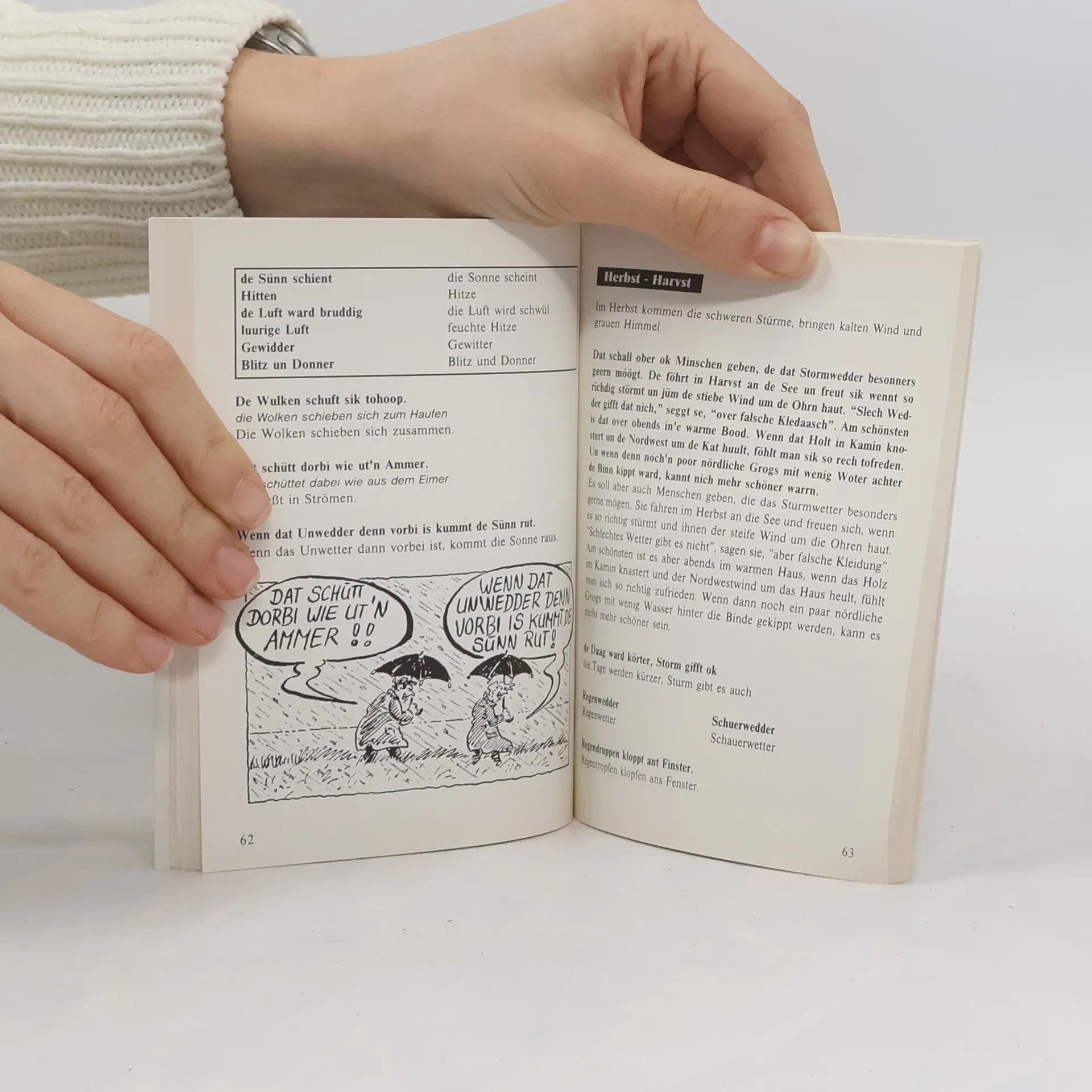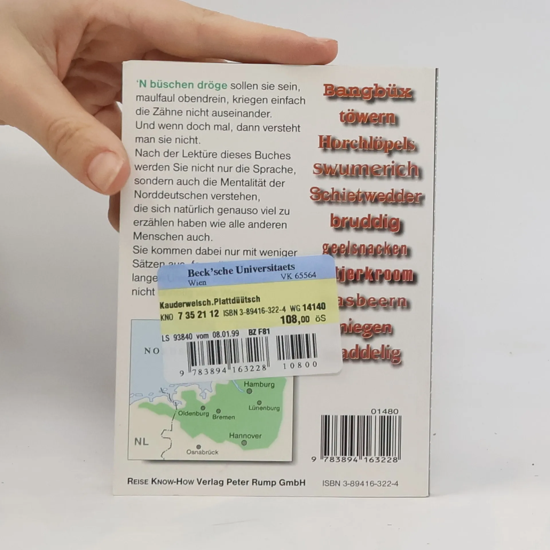 'N büschen dröge sollen sie sein, maulfaul obendrein, kriegen einfach die Zähne nicht auseinander. Und wenn doch mal, dann versteht man sie nicht. Von wem die Rede ist? Von den Plattdeutschen, den Nordlichtern. Stur, steif, stolz und stumm, eben richtige Fischköppe, wie ungezählte Schmährufe behaupten. Natürlich haben sich die Norddeutschen genauso viel zu erzählen wie alle anderen Menschen auch, sie kommen nur mit weniger Sätzen aus, formulieren keine langen Umwege und verlieren nicht unnötig viele Worte. Da schimmert eine gehörige Portion des Charakters durch. Bodenständig, zupackend, den Naturgewalten trotzend - man hat einfach keine Zeit für lange Reden. Und so vermitteln unsere beiden Autoren - Vater und Sohn - in diesem Band nicht nur ihre Heimatsprache, sondern auch die Mentalität ihrer "Landsleute". Begleitkassette separat erhältlich (ISBN 3-89416-417-4)