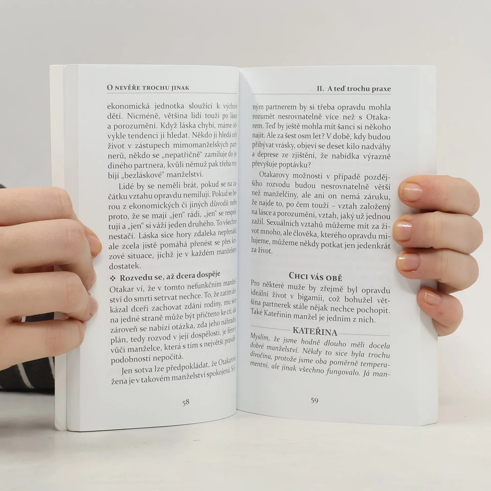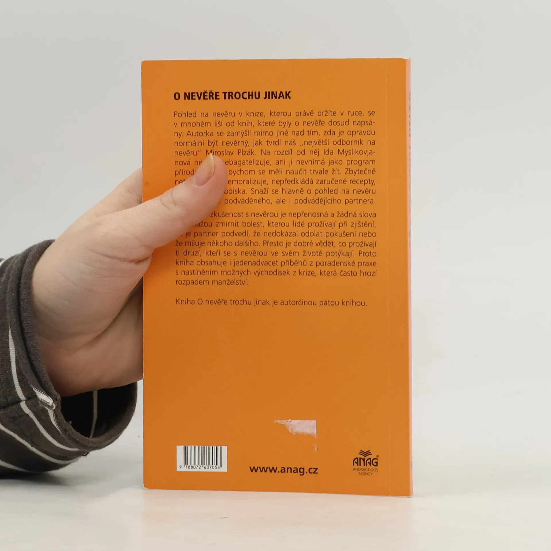 Pohled na nevěru v knize, kterou právě držíte v ruce, se v mnohém liší od knih, které byly o nevěře dosud napsány. Autorka se zamýšlí mimo jiné nad tím, zda je opravdu normální být nevěrný, jak tvrdí náš „největší odborník na nevěru“ Miroslav Plzák. Na rozdíl od něj Ida Myslikovjanová nevěru nebagatelizuje, ani ji nevnímá jako program přírody, s nímž bychom se měli naučit trvale žít. Zbytečně neteoretizuje, nemoralizuje, nepředkládá zaručené recepty, ale hledá východiska. Snaží se hlavně o pohled na nevěru zevnitř očima podváděného, ale i podvádějícího partnera. Konkrétní zkušenost s nevěrou je nepřenosná a žádná slova nedokážou zmírnit bolest, kterou lidé prožívají při zjištění, že je partner podvedl, že nedokázal odolat pokušení nebo že miluje někoho dalšího. Přesto je dobré vědět, co prožívají ti druzí, kteří se s nevěrou ve svém životě potýkají. Proto kniha obsahuje i jedenadvacet příběhů z poradenské praxe s nastíněním možných východisek z krize, která často hrozí rozpadem manželství.