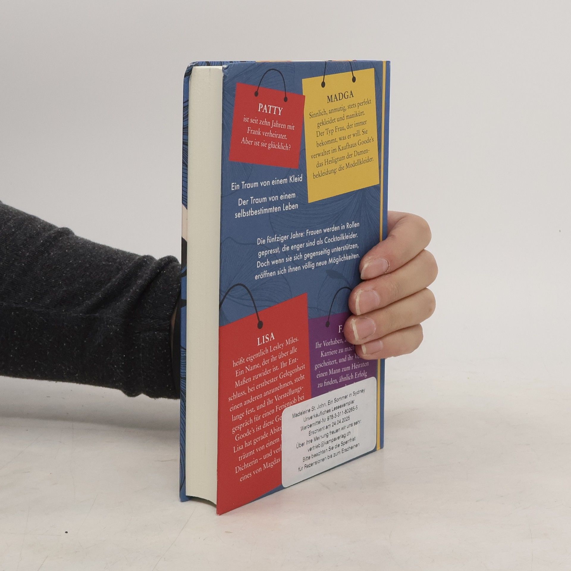 Ende der fünfziger Jahre: Patty, Fay, Magda und Lisa arbeiten im renommierten Kaufhaus Goode’s im Herzen Sydneys. In der zweiten Etage verkaufen die »Frauen in Schwarz«, wie sie wegen ihrer Dienstuniformen genannt werden, Cocktailkleider. Patty, Anfang dreißig, wünscht sich Kinder. Die unglücklich verliebte Fay hat die üblichen Schwierigkeiten mit Männern – viele wollen mit ihr ausgehen, einen Antrag macht ihr aber keiner. Der glamourösen Magda hingegen scheint alles in den Schoß zu fallen: Glücklich verheiratet und erst kürzlich nach Australien eingewandert, verantwortet sie die wahren Schätze – die Modellkleider. Eine selbstbewusste Frau, die immer bekommt, was sie will. Und so nimmt sie auch die schüchterne Lisa unter ihre Fittiche, die während der Schulferien als Aushilfe bei Goode’s arbeitet und von einem Leben als Dichterin träumt – und die sich in eines von Magdas Kleidern verliebt.