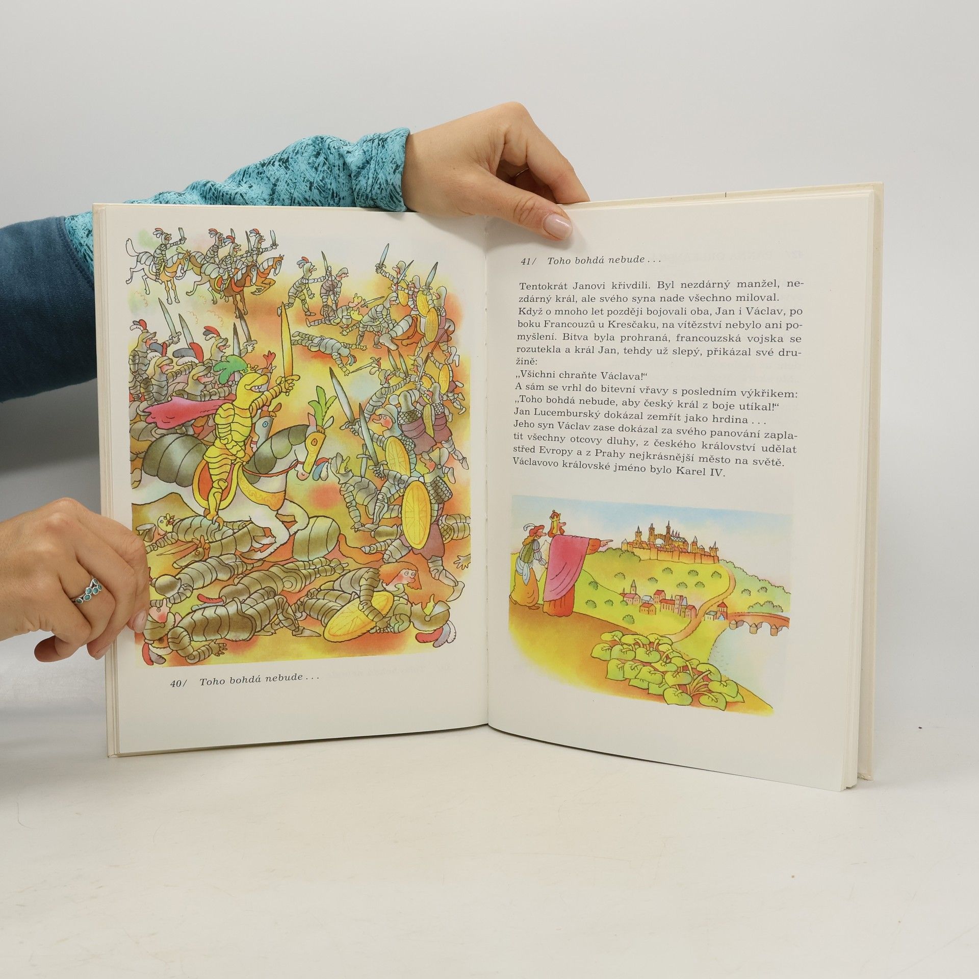 Už dávno nechodívám s tátou za ruku, už dávno mi nic nepovídá... Ale když chce po mně Honzík nějaký nový příběh, úplně nejnovější, říkávám to samé, co mi kdysi říkal táta: "Žádný příběh není nejnovější. Než ti ho dopovím, stanou se na světě jiné a jiné, ještě novější. Ale víš co? Budu ti povídat příběhy úplně staré. A můžeš si být jist, že právě teď, v tuhle minutu, se děje spousta příběhů, které se těm starým podobají jako vejce vejci."