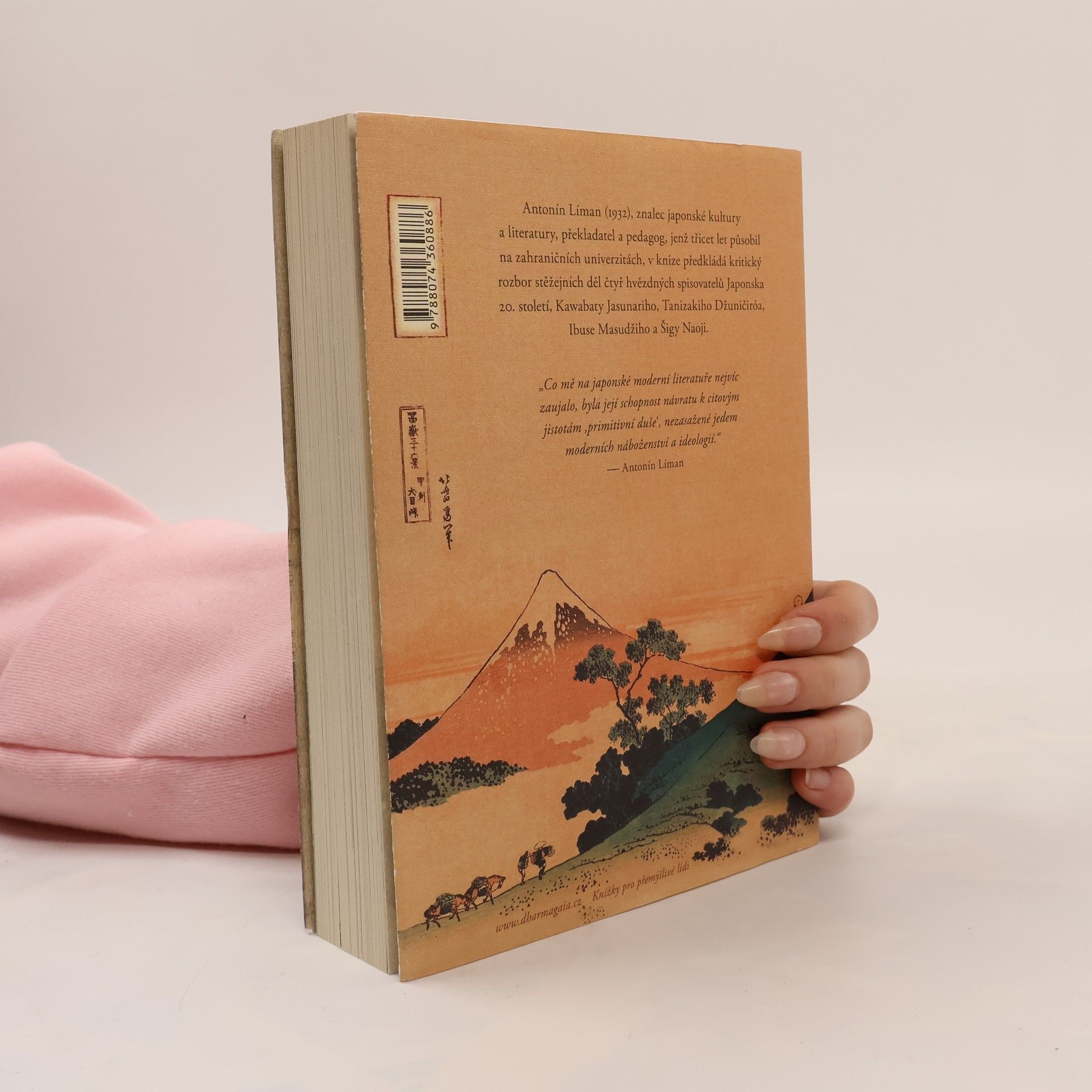 Antonín Líman (1932), znalec japonské kultury a literatury, překladatel a pedagog, jenž třicet let působil na zahraničních univerzitách, v knize předkládá kritický rozbor stěžejních děl čtyř hvězdných spisovatelů Japonska 20. století, Kawabaty Jasunariho, Tanizakiho Džuničiróa, Ibuse Masudžiho a Šigy Naoji, na nichž, jak sám říká, ho nejvíce zaujala jejich schopnost návratu k citovým jistotám „primitivní duše“, nezasažené jedem moderních náboženství a ideologií.