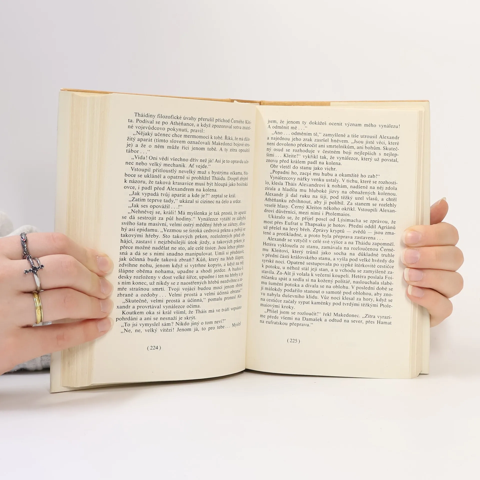 Athéňanka Tháis vykročila z hranic věd. fantastiky. Vypráví o historické události, spálení Persepolis proslulou athénskou héterou Tháis. Jefremov v románu seznámí čtenáře nejen s rozporuplnou postavou Alexandra Makedonského, ale hlavní postava Tháis ho provede i různými starověkými náboženskými kulty spjaté s velkou ženskou bohyní. Při válečných taženích Alexandra po celém světě zažije chvíle mocenských triumfů i katastrofický konec, ke kterému spolu s Alexandrem dospěje helénská říše.
