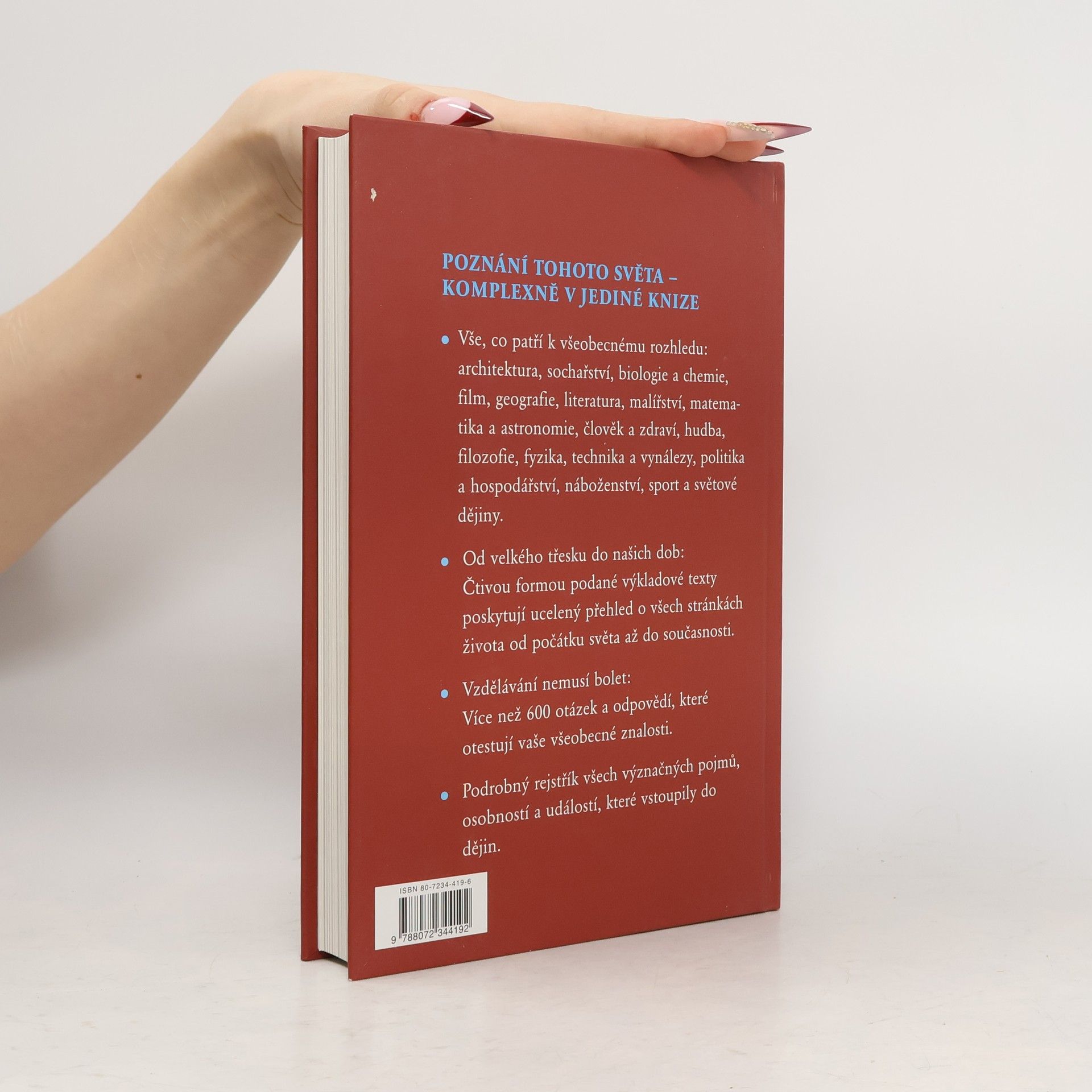 Výkladové texty z širokého spektra oborů lidské činnosti podané čtivou formou poskytují ucelený přehled o všech stránkách života od počátku světa až do současnosti. Vaše všeobecné znalosti si můžete otestovat ve více než 600 otázkách a odpovědích.