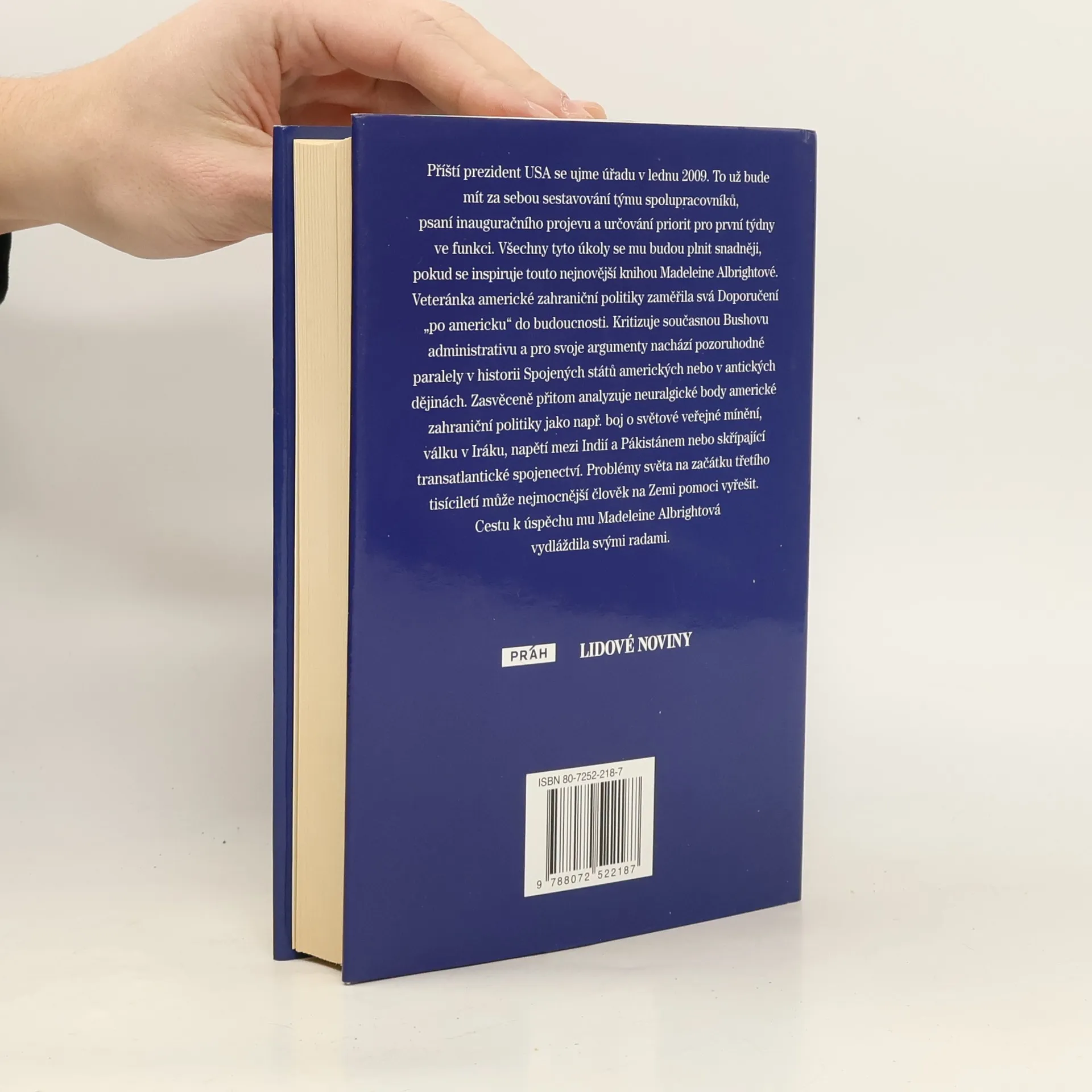 Příští prezident USA se ujme úřadu v lednu 2009. To už bude mít za sebou sestavování týmu spolupracovníků, psaní inauguračního projevu a určování priorit pro první týdny ve funkci. Všechny tyto úkoly se mu budou plnit snadněji, pokud se inspiruje touto nejnovější knihou Madelaine Albrightové. Veteránka americké zahraniční politiky zaměřila svá Doporučení "po americku" do budoucnosti. Kritizuje současnou Bushovu administrativu a pro svoje argumenty nachází pozoruhodné paralely v historii Spojených států amerických nebo v antických dějinách. Zasvěceně přitom analyzuje neuralgické body americké zahraniční politiky jako např. boj o světové veřejné mínění, válku v Iráku, napětí mezi Indií a Pákistánem nebo skřípající transatlantické spojenectví. Problémy světa na začátku třetího tisíciletí může nejmocnější člověk na Zemi pomoci vyřešit. Cestu k úspěchu mu Madelaine Albrightová vydláždila svými radami.