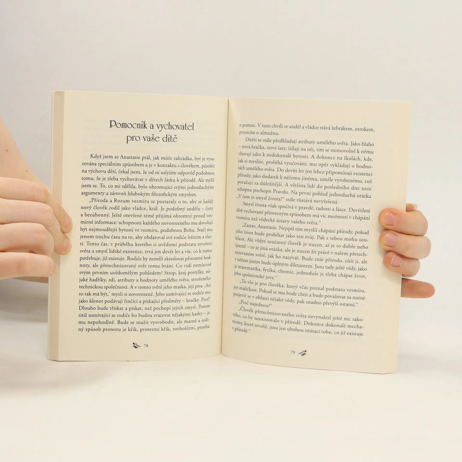 V první knize mladá poustevnice Anastasia odpovídá na řadu otázek týkajících se zdravého způsobu života, šťastného vztahu mezi mužem a ženou, početí a výchovy dětí. Zároveň poskytuje užitečné rady v oblasti zahrádkaření a ekologie, které jsou geniální svou jednoduchostí.