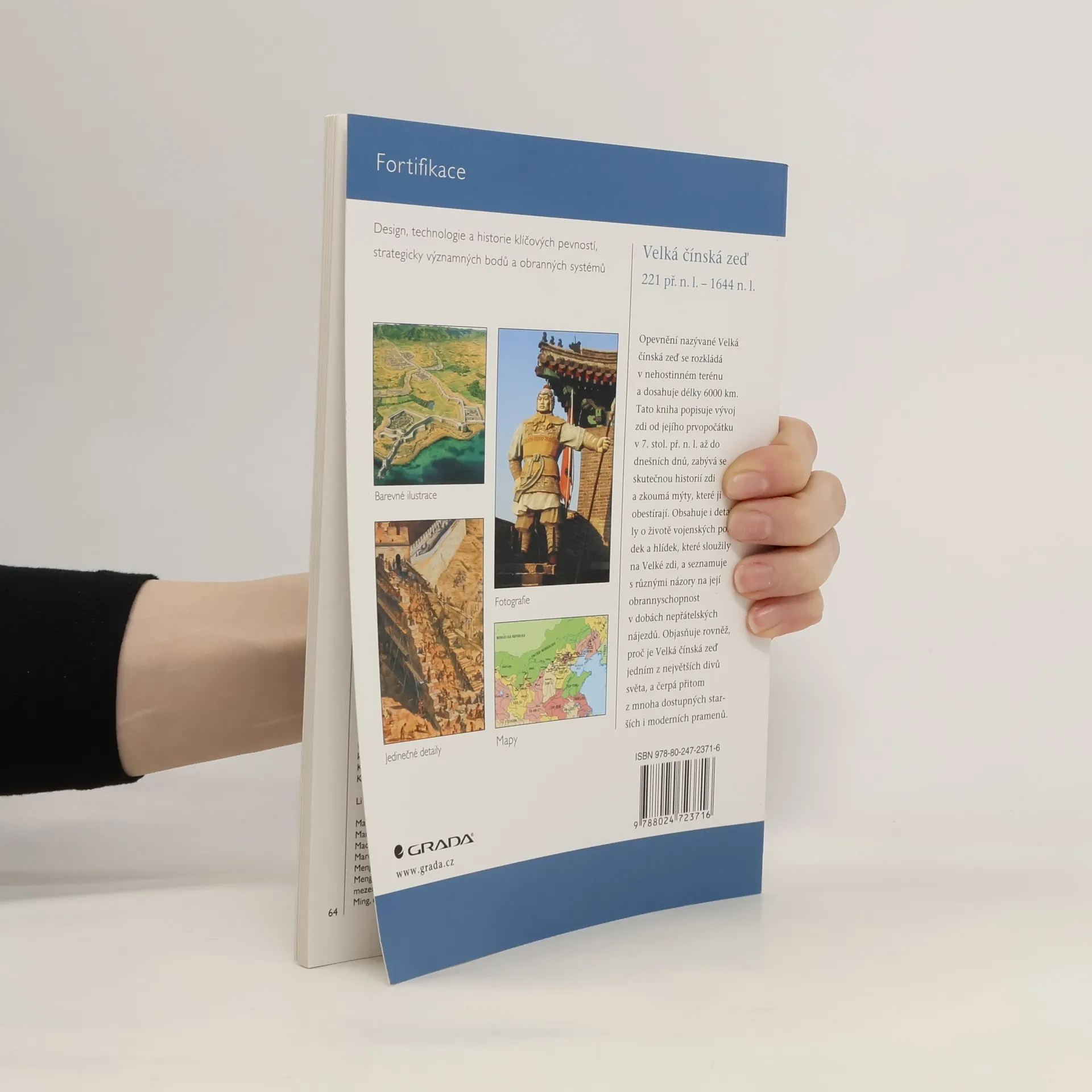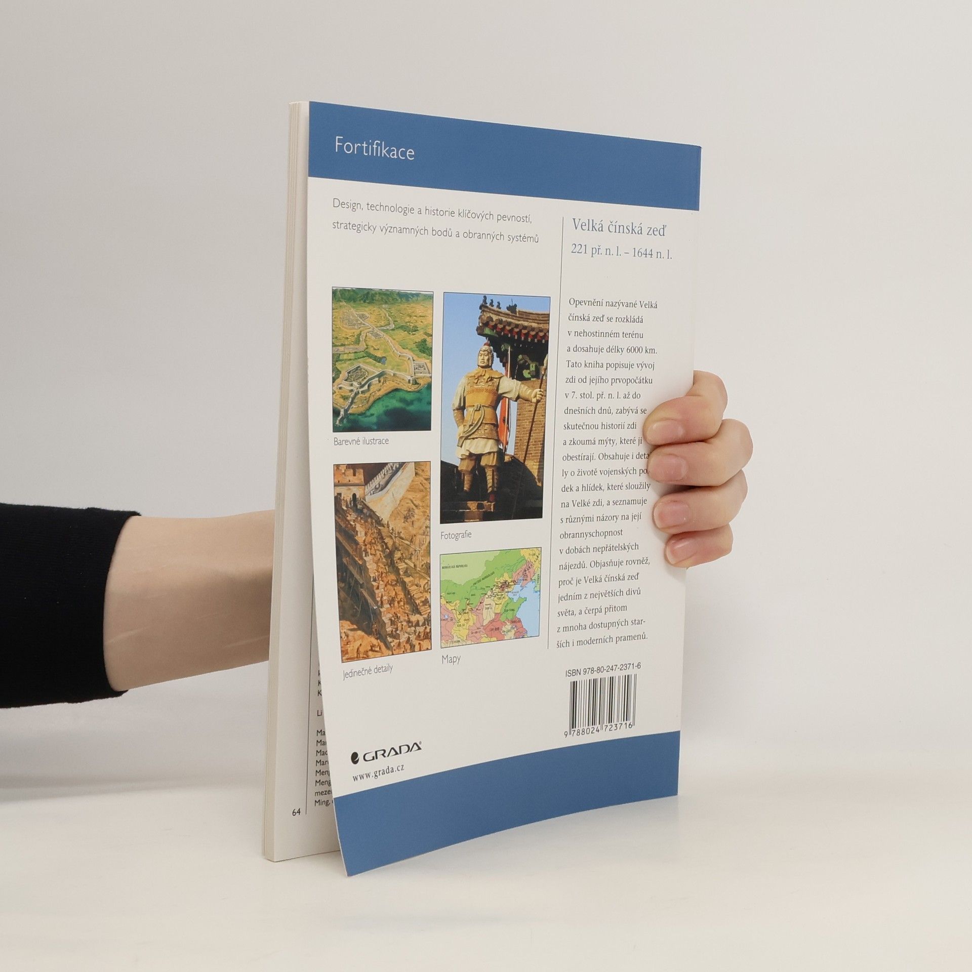 Nejslavnějším příkladem fortifikační stavby na světě je bezpochyby Velká čínská zeď, která se táhne více než 6000 km nehostinným terénem. V knize je popsána její historie od samotného vzniku až po dnešek, tvrdá realita, jež provázela její výstavbu, její význam pro obranu čínského státu, život jejích posádek, boje, které se zde odehrály, zbraně, jimiž byla vybavena, její stavební a architektonické prvky, i mýty, které ji obklopují. V závěru knihy jsou uvedeny i informace o jejím současném stavu a možnostech návštěvy. Z anglického originálu Fortress 57: The Great Wall of China 221 BC-AD 1644 vydaného v Osprey Publishing Ltd., Oxford (2007) přeložila PhDr. Petra Müllerová, Ph.D. První vydání.