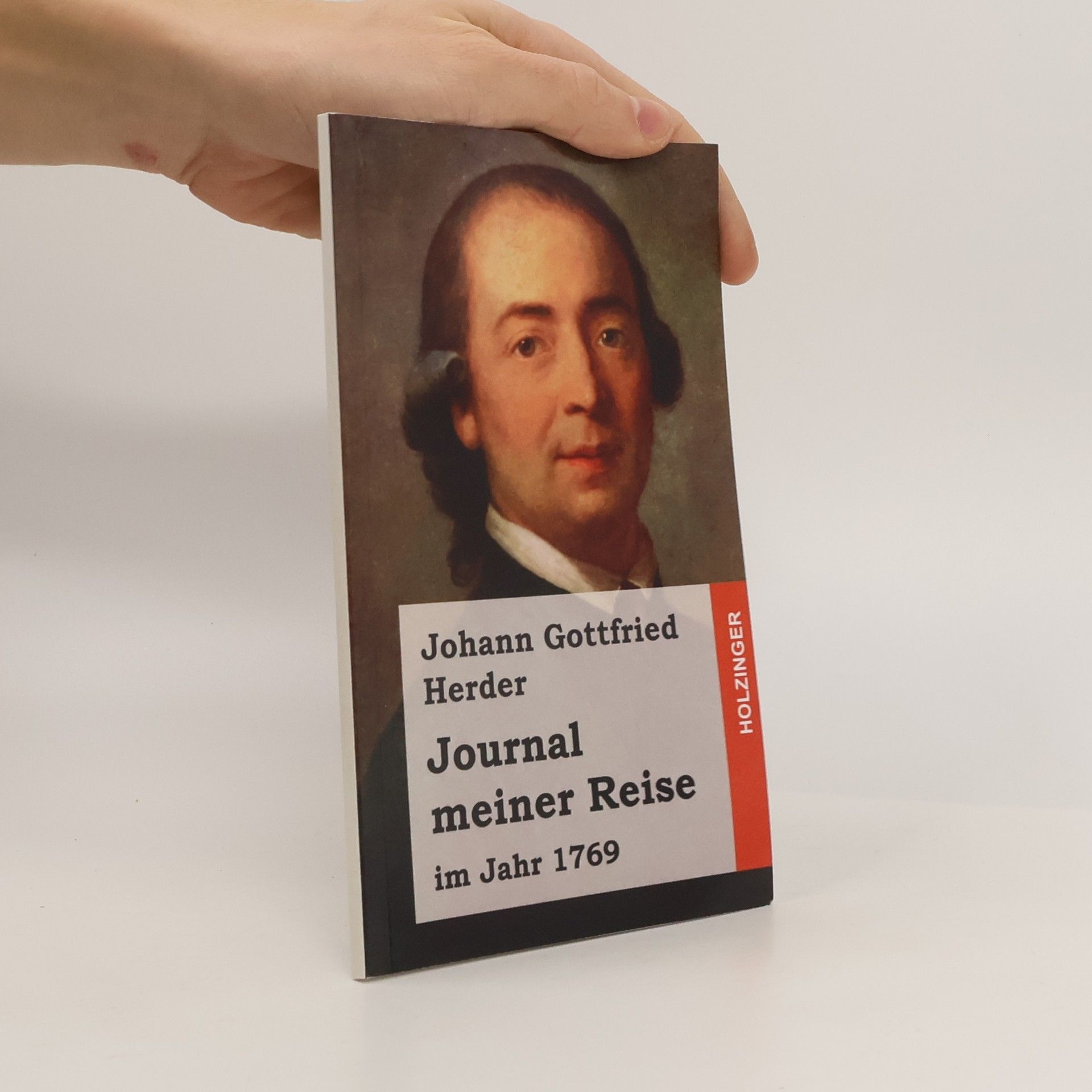 Johann Gottfried Herder: Journal meiner Reise. "im Jahr 1769" Edition Holzinger. Taschenbuch Berliner Ausgabe, 2013 Vollstandiger, durchgesehener Neusatz mit einer Biographie des Autors bearbeitet und eingerichtet von Michael Holzinger Entstanden 1769/70. Erstdruck in: E.G. v. Herder, Herders Lebensbild, Erlangen 1846. Textgrundlage ist die Ausgabe: Sturm und Drang. Dichtungen und theoretische Texte in zwei Banden. Ausgewahlt und mit einem Nachwort versehen von Heinz Nicolai, Munchen: Winkler, 1971 Herausgeber der Reihe: Michael Holzinger Reihengestaltung: Viktor Harvion Umschlaggestaltung unter Verwendung des Bildes: Johann Gottfried Herder (Gemalde von Anton Graff, 1785)