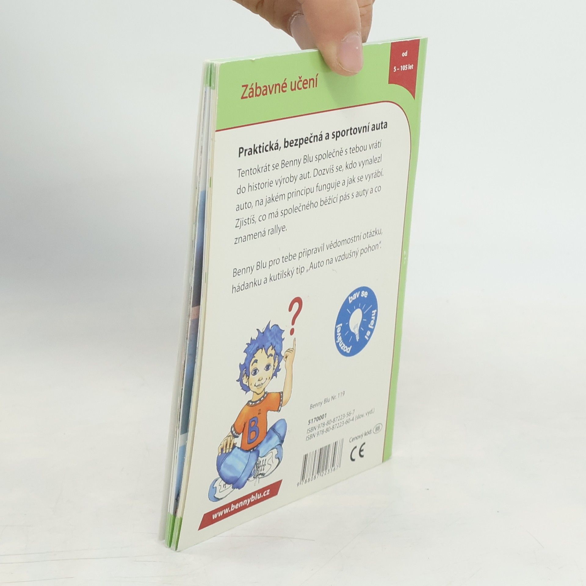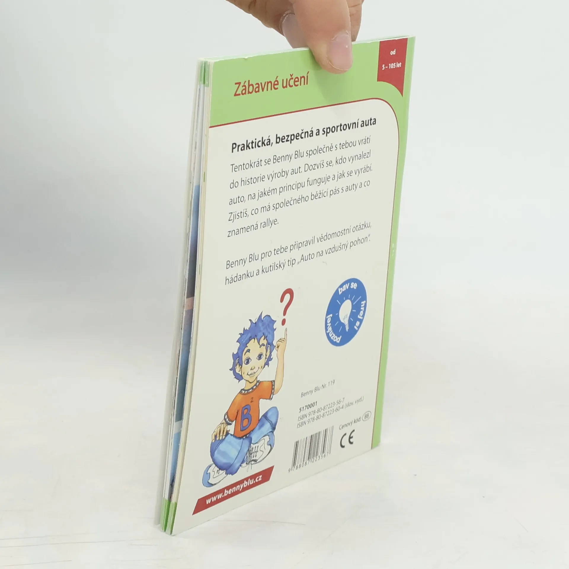 Tentokrát se Benny Blu společně s tebou vrátí do historie výroby aut. Dozvíš se, kdo vynalezl auto, na jakém principu funguje a jak se vyrábí. Zjistíš, co má společného běžící pás s auty a co to znamená rallye. Něco navíc: vědomostní otázka, hádanka a kutilský tip Auto na vzdušný pohon.