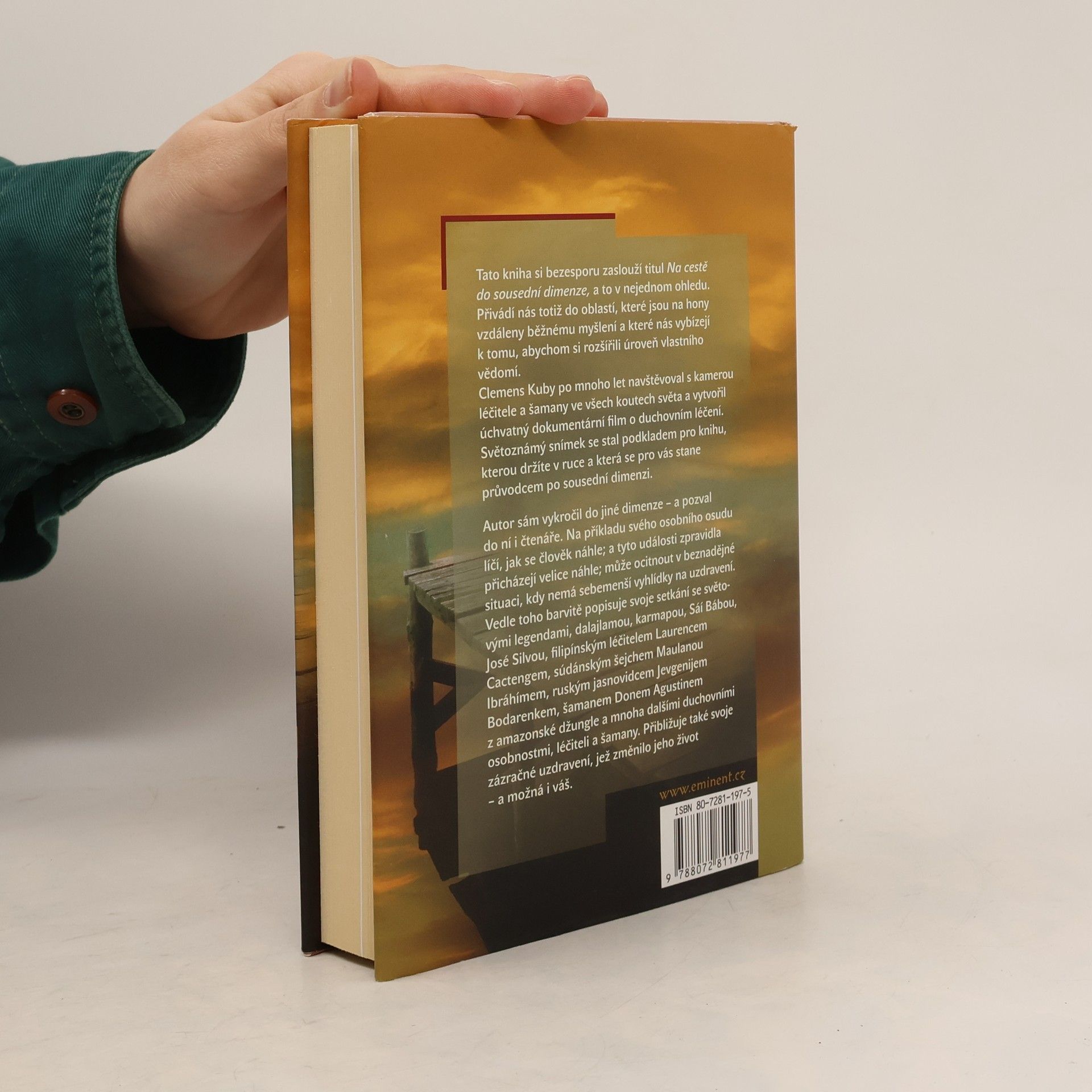 Tato kniha si bezesporu zaslouží titul Na cestě do sousední dimenze, a to v nejednom ohledu. Přivádí nás totiž do oblastí, které jsou na hony vzdáleny běžnému myšlení a které nás vybízejí k tomu, abychom si rozšířili úroveň vlastního vědomí. Clemens Kuby po mnoho let navštěvoval s kamerou léčitele a šamany ve všech koutech světa a vytvořil úchvatný dokumentární film o duchovním léčení. Snímek se stal podkladem pro knihu, kterou držíte v ruce a která se pro vás stane průvodcem po sousední dimenzi. Autor sám vykročil do jiné dimenze – a pozval do ní i čtenáře. Na příkladu svého osobního osudu líčí, jak se člověk náhle; a tyto události zpravidla přicházejí velice náhle; může ocitnout v beznadějné situaci, kdy nemá sebemenší vyhlídky na uzdravení. Vedle toho barvitě popisuje svoje setkání se světovými legendami, dalajlamou, karmapou, Sáí Bábou, José Silvou, filipínským léčitelem Laurencem Cactengem, súdánským šejchem Maulanou Ibráhímem, ruským jasnovidcem Jevgenijem Bodarenkem, šamanem Donem Agustinem z amazonské džungle a mnoha dalšími duchovními osobnostmi, léčiteli a šamany. Přibližuje také svoje zázračné uzdravení, jež změnilo jeho život –a možná i váš. Součástí knihy je zajímavá fotografická příloha.