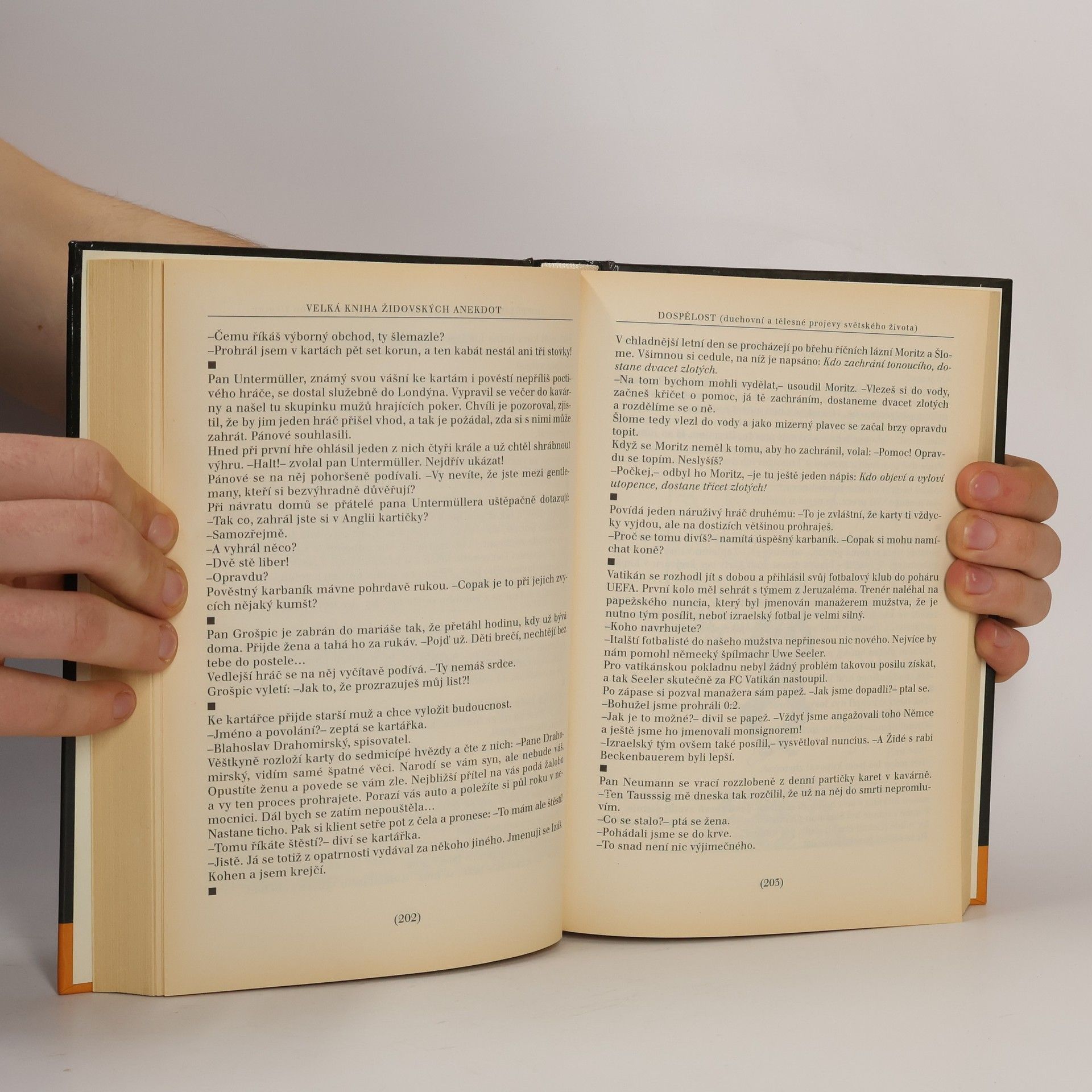 Rozsáhlá sbírka židovských anekdot sestavená z knižních sborníků, časopisů a ústního podání, sleduje život člověka od narození až do smrti.