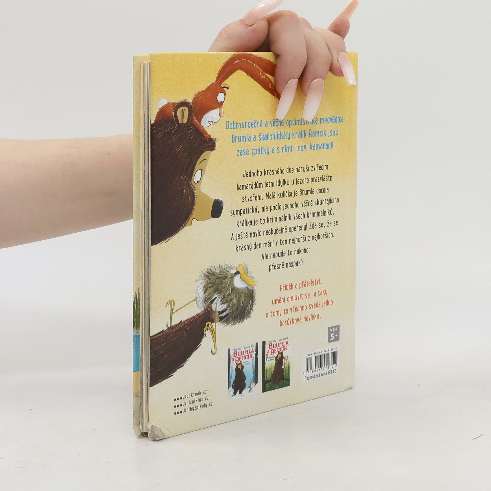 Dobrosrdečná a věčně optimistická medvědice Brumla a škarohlídský králík Remcík jsou zase zpátky a s nimi i noví kamarádi! Jednoho krásného dne naruší zvířecím kamarádům letní idylku u jezera prazvláštní stvoření. Malá kulička je Brumle docela sympatická, ale podle jednoho věčně skuhrajícího králíka je to kriminálník všech kriminálníků. A ještě navíc neobyčejně opeřený! Zdá se, že se krásný den mění v ten nejhorší z nejhorších. Ale nebude to nakonec přesně naopak? Příběh o kráse přátelství, umění omluvit se a taky o tom, co se všechno svede jedno borůvkové hovínko.
