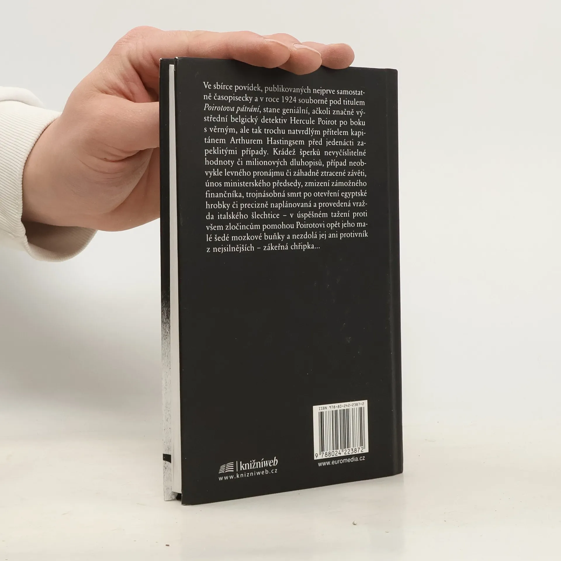 Do sbírky povídek pod titulem Poirotova pátrání zahrnula Agatha Christie jedenáct příběhů, v nichž belgický detektiv Hercule Poirot – za pomoci svých nezdolných šedých mozkových buněk a s věrným přítelem kapitánem Hastingsem po boku – úspěšně a s grácií sobě vlastní řeší mimo jiné krádeže šperků či milionových dluhopisů, případ ztracené závěti či levného bytu, únos ministerského předsedy nebo dobrodružství s egyptskou hrobkou. 2. vydání.