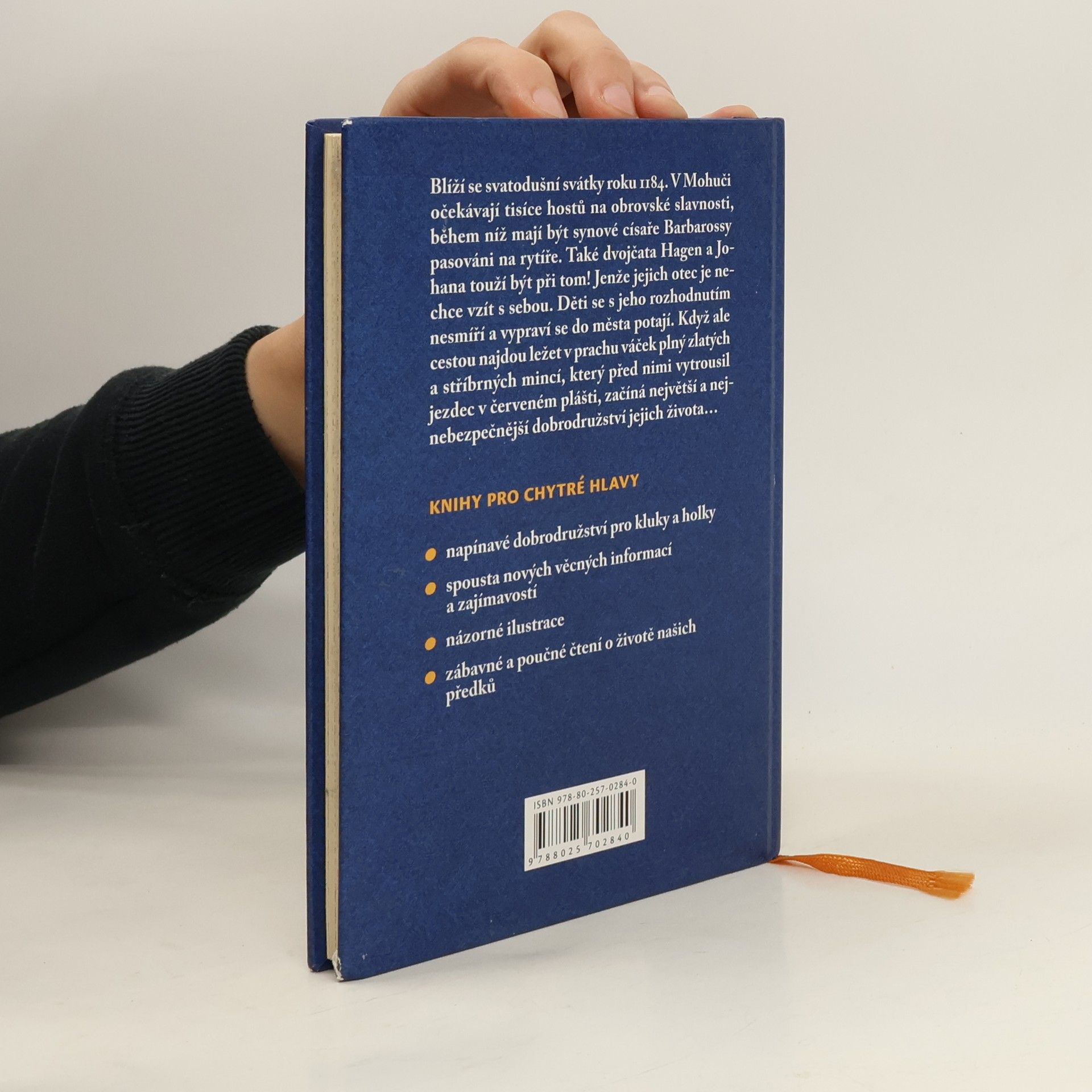 Knížka zahajuje novou edici Tygří oko, je určena holkám i klukům, kteří nejen rádi čtou dobrodružné, napínavé, detektivně laděné příběhy, ale také se chtějí dozvědět něco nového a zajímavého z dějin lidstva. Každý díl přenese čtenáře do jiné historické epochy a prostřednictvím ilustrací a faktografických informací, souvisejících s příběhem a začleněných do ilustračního doprovodu, mu přiblíží život našich předků. * napínavé dobrodružství pro kluky a holky * spoustu nových věcných informací a zajímavostí * názorné ilustrace * zábavné a poučné čtení Píše se rok 1184. Do Mohuče proudí zástupy zvědavců a hostů, aby byli svědky pasovaní synů císaře Fridricha Barbarossy na rytíře. Také dvojčata Johana a Hagen by se na slavnost ráda vypravila. Jenže jejich tatínek je nechce vzít s sebou. Děti se s jeho rozhodnutím nesmíří a vypraví se do města potají. Když ale cestou najdou ležet v prachu váček plný zlatých a stříbrných mincí, který před nimi vytrousil jezdec v červeném plášti, začíná největší a nejnebezpečnější dobrodružství jejich života…