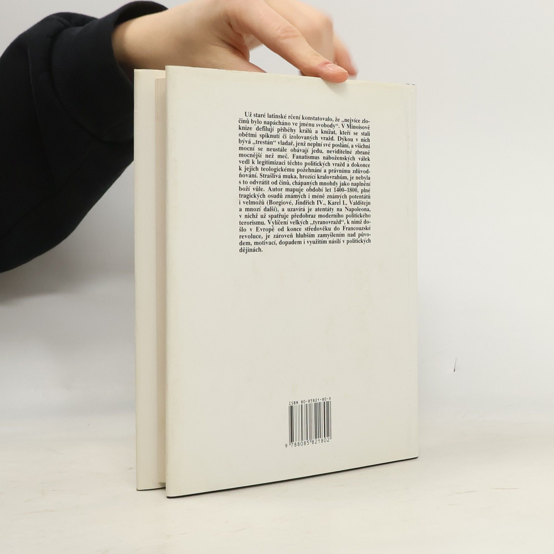 Podtitul: Politické vraždy v Evropě : (1400-1800) Zajímavá publikace o dějinách politických vražd v Evropě v období mezi lety 1400 a 1800. V roce 1400 byl zavražděn Richard II., tiše a nenápadně, v roce 1800 byl spáchán mohutný bombový útok na Napoleona na rušné pařížské ulici. Tyto dva časově vymezující body symbolizují vývoj fenoménu atentát v období, ležícím mezi nimi. Od tichých, úzkostlivě tajených spiknutí středověku až k pompéznosti novověkého politického násilí, při němž je demonstrace atentátníkova světonázoru často důležitějším motivem než sama osoba oběti. Kniha mapuje historické pozadí známých i méně známých případů "královského vraždění". Všímá si obrovského vlivu tohoto fenoménu na dějiny evropské civilizace, neboť nejde jen o přerušené životy lidí, hýbajících koly dějin, ale i o samotný strach z násilí, který tyto lidi často doslova ovládal a nutil je rozhodovat v intencích svého strachu, jehož vinou se stávali hysterickými a nebezpečnými svému okolí. Strach z násilného převratu stojí za mohutnými čistkami ve vládnoucích kruzích, ale třeba i za pozoruhodnými architektonickými "úlety" ve vládních palácích. Hlavním kladem knihy je fakt, že na základě atraktivního, ale seriózně zpracovaného tématu dokáže nenásilně seznámit čtenáře s kusem evropských dějin a vůbec dějin západní kultury a myšlení.