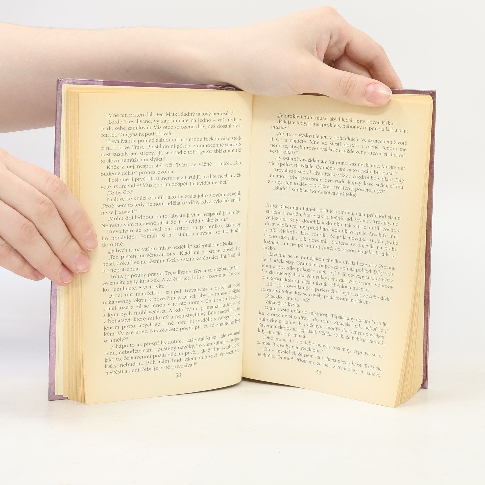 Osudová kletba spojuje život chudé Ravenny a mocného lorda Trevallyana. Dokáže si pyšný šlechtic získat Ravenninu lásku, a odvrátit tak zkázu celého kraje? Když Niallovi, Lordu Trevallyanovi je čerstvých dvacet let a dosud se neoženil, je na něj seslán geis - starobylý závazek či kletba, který provází všechny muže z anglického rodu Trevallyanů za to, že získali irskou půdu. Geis se skládá ze čtyř částí, z nichž právě ta čtvrtá v sobě skrývá tu největší krutost a ironii… Niall jako moderní muž 19. století však ve staré irské pověry nevěří a když mu rada starších v jeho dvaceti letech představí jeho nevěstu, o to víc se ujistí, že geis nemůže existovat...