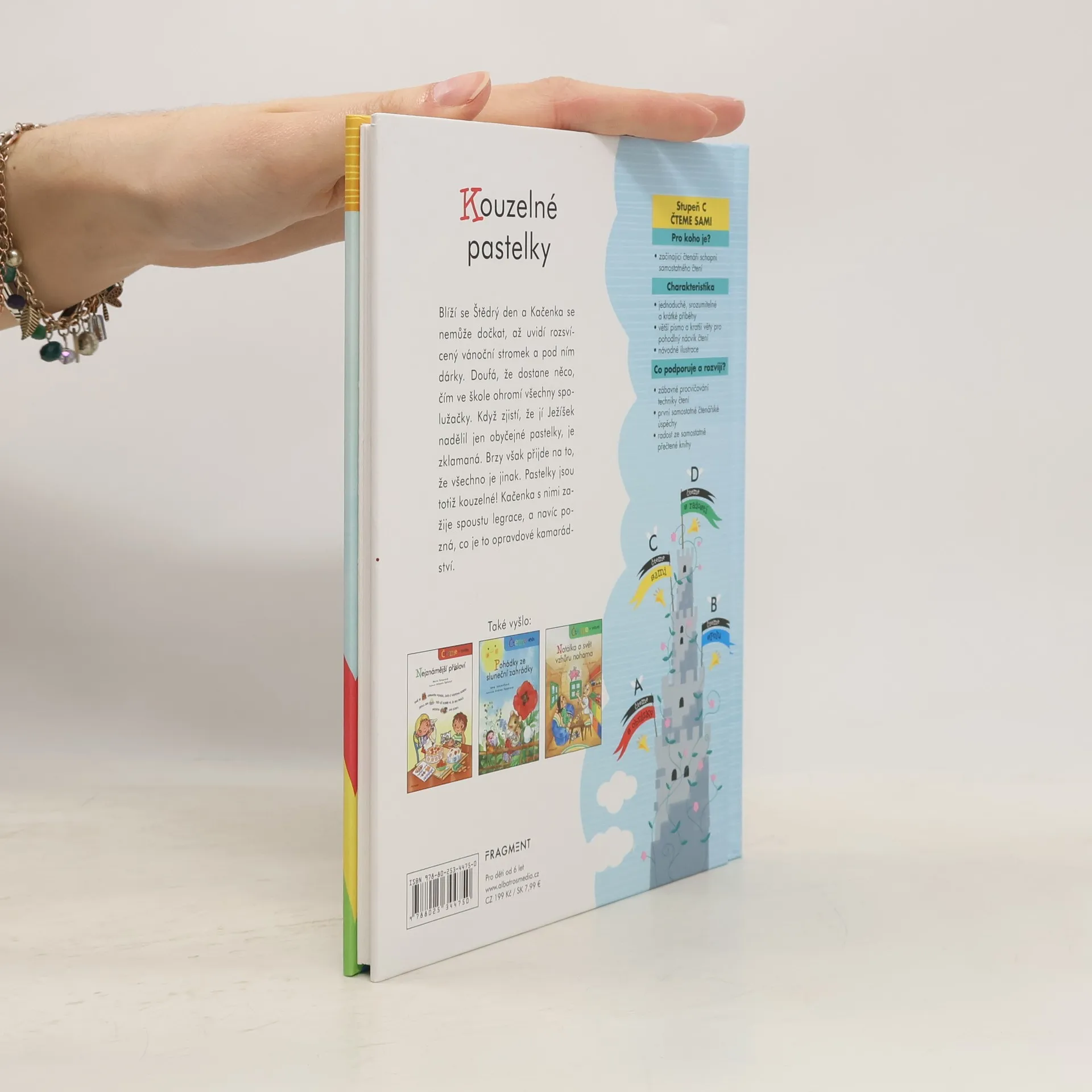 Podporujte přirozený rozvoj čtenářských dovedeností svých dětí. Díky komplexnímu čtenářskému systému z nakladatelství Fragment budou číst jako draci! Kačenka čekala, že pod vánočním stromečkem najde dárek, kterým ohromí všechny spolužačky. Když dostane jen obyčejné pastelky, je zklamaná. Jenže všechno je jinak – pastelky jsou kouzelné! Zažije s nimi spoustu legrace, a navíc pozná, co je to opravdové kamarádství. Vánoční příběh doplněný krásnými ilustracemi je přizpůsoben čtenářským schopnostem začínajících čtenářů. Jednoduchý text a větší velikost písma jim usnadní první samostatné pokusy o čtení.
