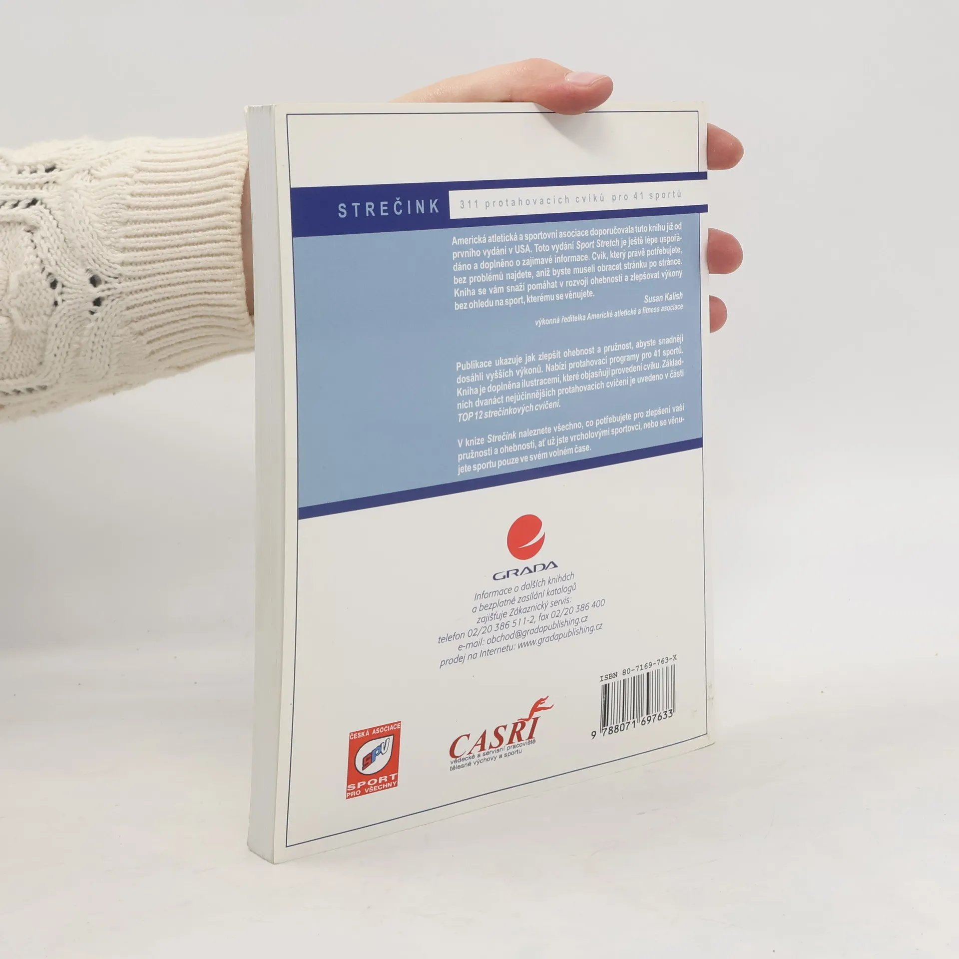 Kniha přináší ilustrovaný popis 311 protahovacích cvičení, jejichž výběr zahrnutý do tréninku minimalizuje nebezpečí zranění a zlepšuje výsledky jednotlivce i týmu. Cviky jsou uspořádány jako sestavy vhodné pro 41 různých sportovních odvětví (běhy, tenis, lyžování, bowling, hokej, in-line bruslení, zápas, squash a další).