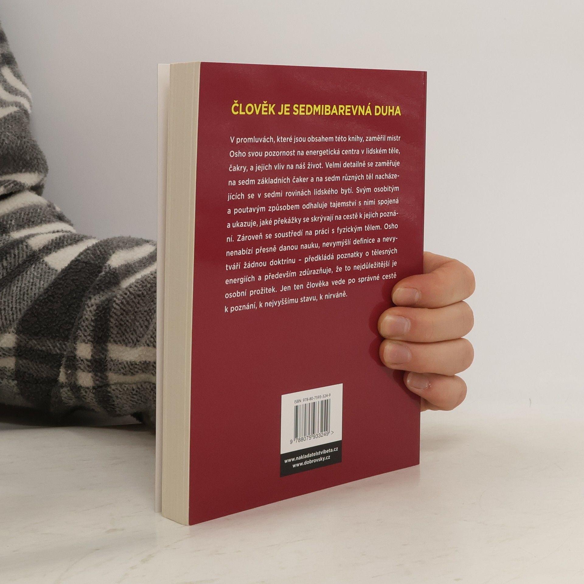 Člověk je sedmibarevná duha Těmito slovy uvádí mistr Osho svou promluvu o energetických centrech v lidském těle nazývaných čakry a o jejich vlivu na život člověka. Velmi detailně se zaměřuje na sedm základních čaker a na sedm různých těl nacházejících se v sedmi rovinách lidského bytí. Svým osobitým a poutavým způsobem odhaluje jejich tajemství a ukazuje, jaké překážky se skrývají na cestě k jejich poznání. Zároveň se soustředí na práci s fyzickým tělem, na tradiční metody jeho pročišťování a také na různé pohledy dnešní vědy na tuto otázku. Osho nenabízí přesně danou nauku, nevymýšlí definice a nevytváří žádnou doktrínu – předkládá poznatky o tělesných energií a především zdůrazňuje, že to nejdůležitější je osobní prožitek.