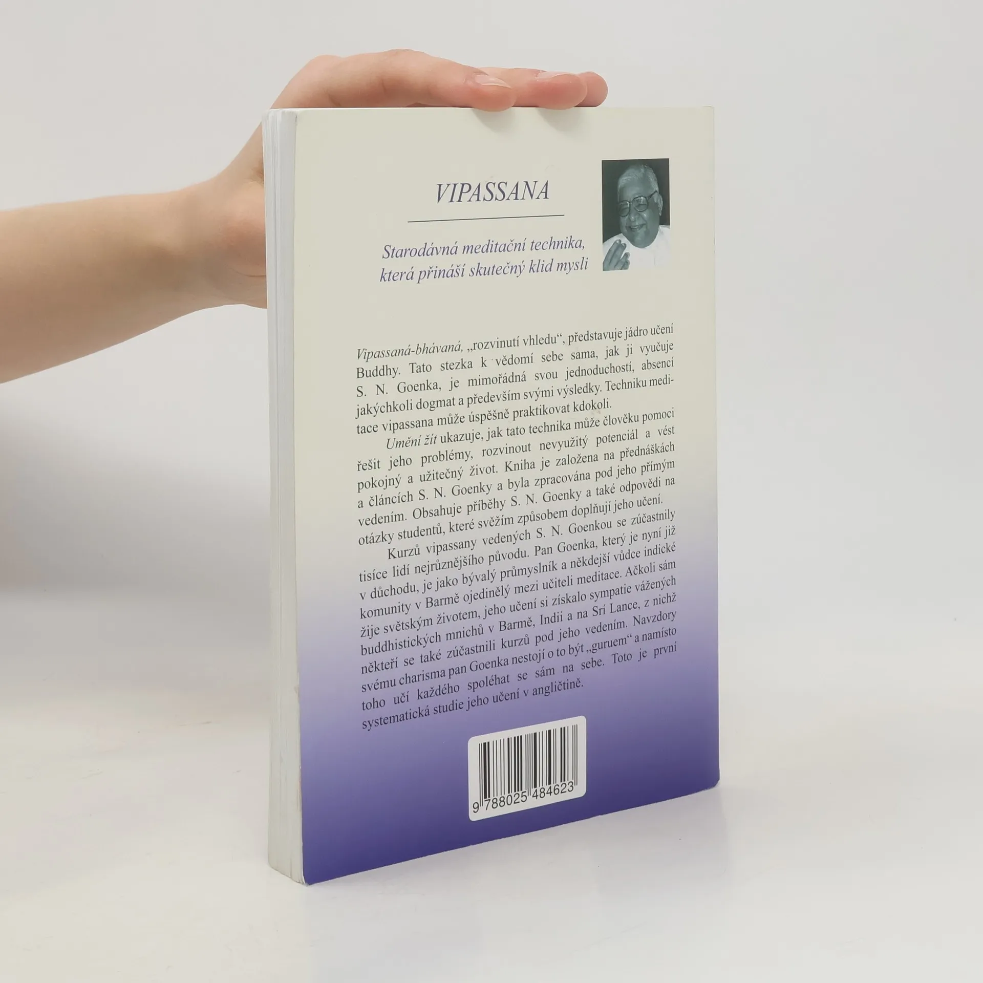 Vipassaná-bhávaná, "rozvinutí vhledu", představuje jádro učení Buddhy. Tato stezka k vědomí sebe sama, jak ji vyučuje S.N. Goenka, je mimořádná svou jednoduchostí, absencí jakýchkoli dogmat a především svými výsledky. Techniku meditace vipassana může úspěšně praktikovat kdokoli. Umění žít ukazuje, jak tato technika může člověku pomoci řešit jeho problémy, rozvinout nevyužitý potenciál a vést pokojný a užitečný život. Kniha je založena na přednáškách a článcích S.N. Goenky a byla zpracována pod jeho přímým vedením. Obsahuje příběhy S.N. Goenky a také odpovědi na otázky studentů, které svěžím způsobem doplňují jeho učení. Kurzů vipassany vedených S.N. Goenkou se zúčastnily tisíce lidí nejrůznějšího původu. Pan Goenka, který je nyní již v důchodu, je jako bývalý průmyslník a někdejší vůdce indické komunity v Barmě ojedinělý mezi učiteli meditace. Ačkoli sám žije světským životem, jeho učení si získalo sympatie vážených buddhistických mnichů v Barmě, Indii a na Srí Lance, z nichž někteří se také zúčastnili kurzů pod jeho vedením. Navzdory svému charisma pan Goenka nestojí o to být "guruem" a namísto toho učí každého spoléhat se sám na sebe. Toto je první systematická studie jeho učení v angličtině. William Hart studuje vipassanu již mnoho let. Od roku 1982 vede jako asistující učitel S.N. Goenky kurzy vipassany na západě.