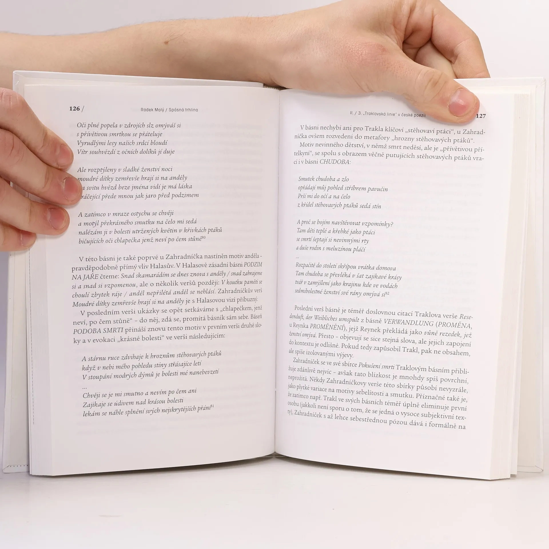 Kniha má podtitul "Reflexe poezie Georga Trakla v české literatuře".