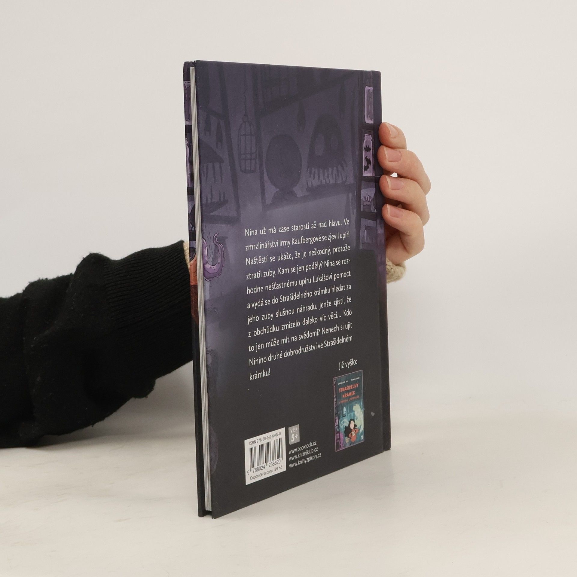Nina už má zase starostí až nad hlavu! Ve zmrzlinářství Irmy Kaufbegové se zjeví upír! Naštěstí se ukáže, že je neškodný – ztratil totiž zuby! Kam se jen poděly? Nina se rozhodne nešťastnému upíru Lukášovi pomoct a vydá se do strašidelného krámku hledat za zuby slušnou náhradu. Jenže se ukazuje, že z obchůdku zmizelo daleko víc věcí… Kdo to jen může mít na svědomí? Kniha je určena dětem od 5 let.