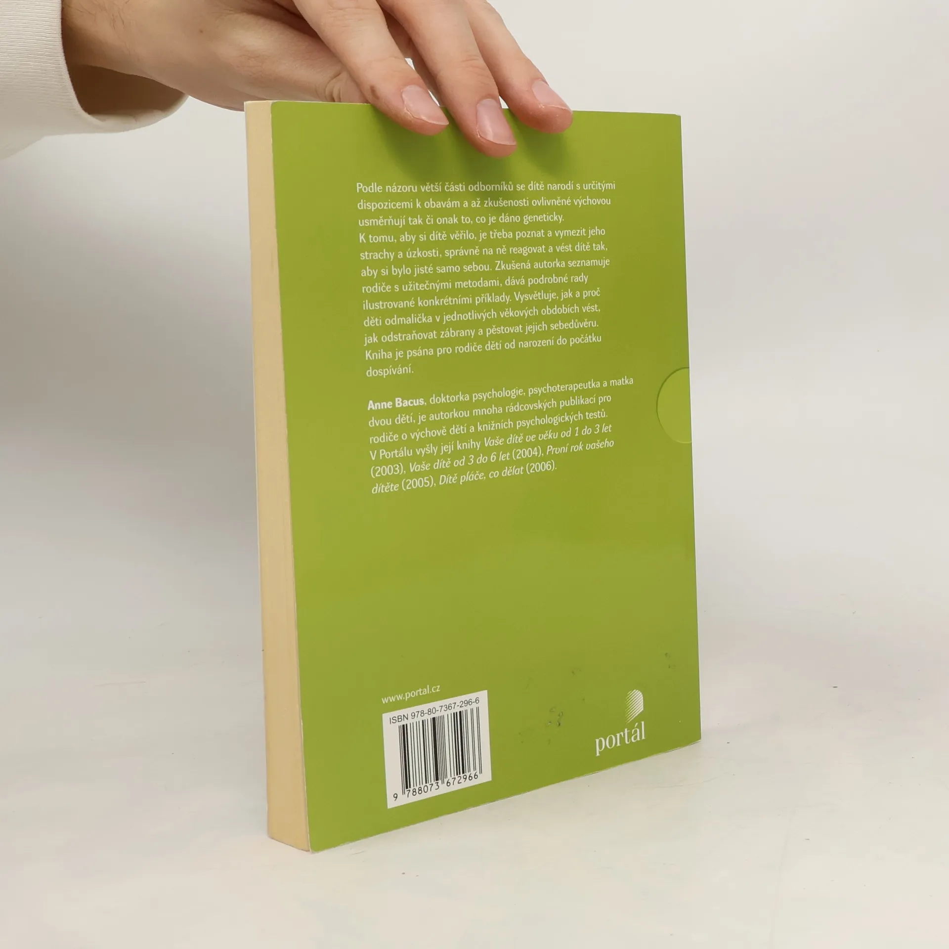 Podle názoru větší části odborníků se dítě narodí s určitými dispozicemi k obavám a až zkušenosti ovlivněné výchovou usměrňují tak či onak to, co je dáno geneticky. K tomu, aby si dítě věřilo, je třeba poznat a vymezit jeho strachy a úzkosti, správně na ně reagovat a vést ho tak, aby si bylo jisté samo sebou. Zkušená autorka seznamuje rodiče s užitečnými metodami, dává podrobné rady a vysvětlení ilustrované konkrétními příklady. Vysvětluje, jak a proč děti odmalička v jednotlivých věkových obdobích vést, jak odstraňovat zábrany a pěstovat jejich sebedůvěru. Kniha je psána pro rodiče dětí od narození do počátku dospívání.