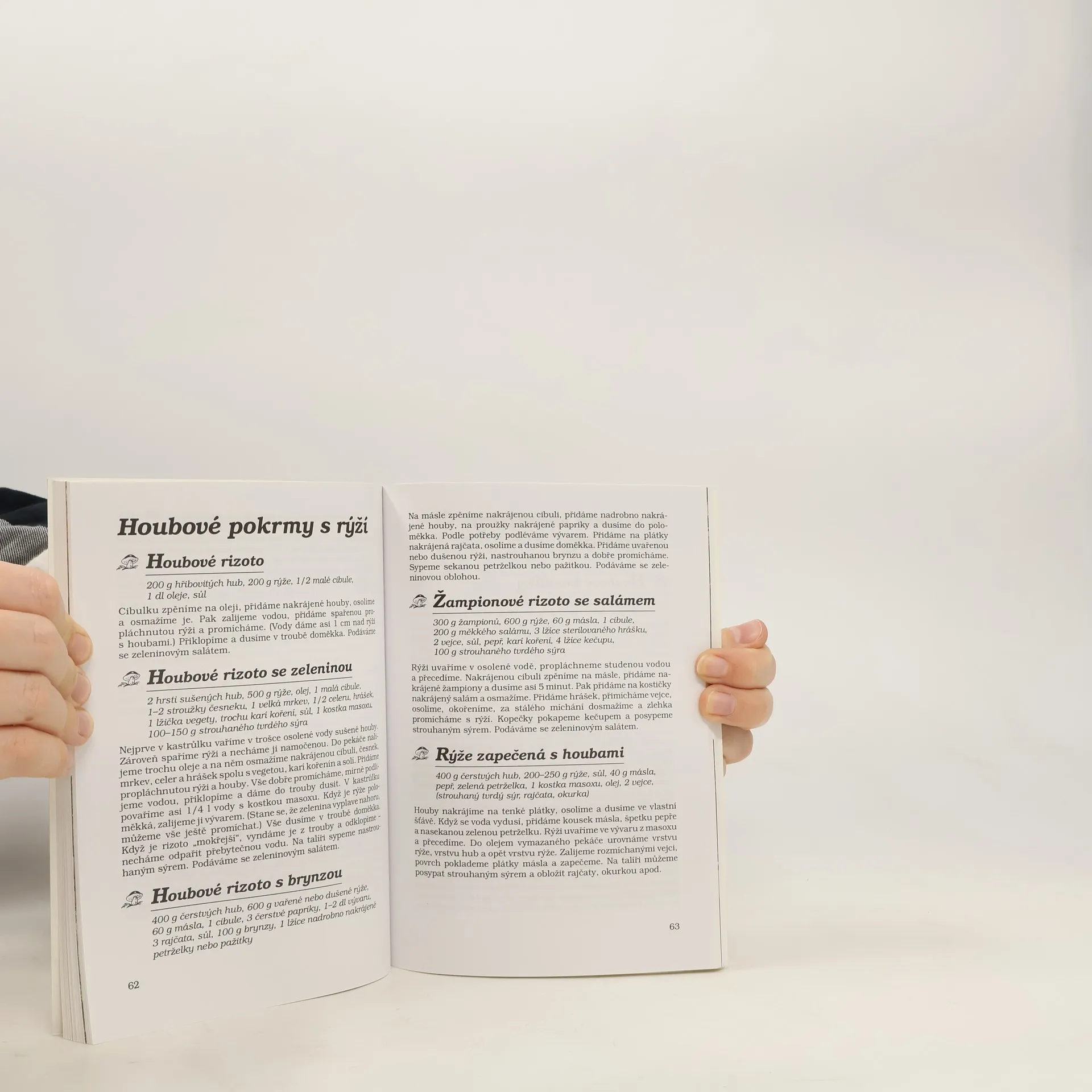 Druhé vydání kuchařky nabízí recepty na rozmanité úpravy hub – vařené, dušené, smažené či pečené pokrmy, bezmasé, i s masem, saláty, pomazánky a konzervování.