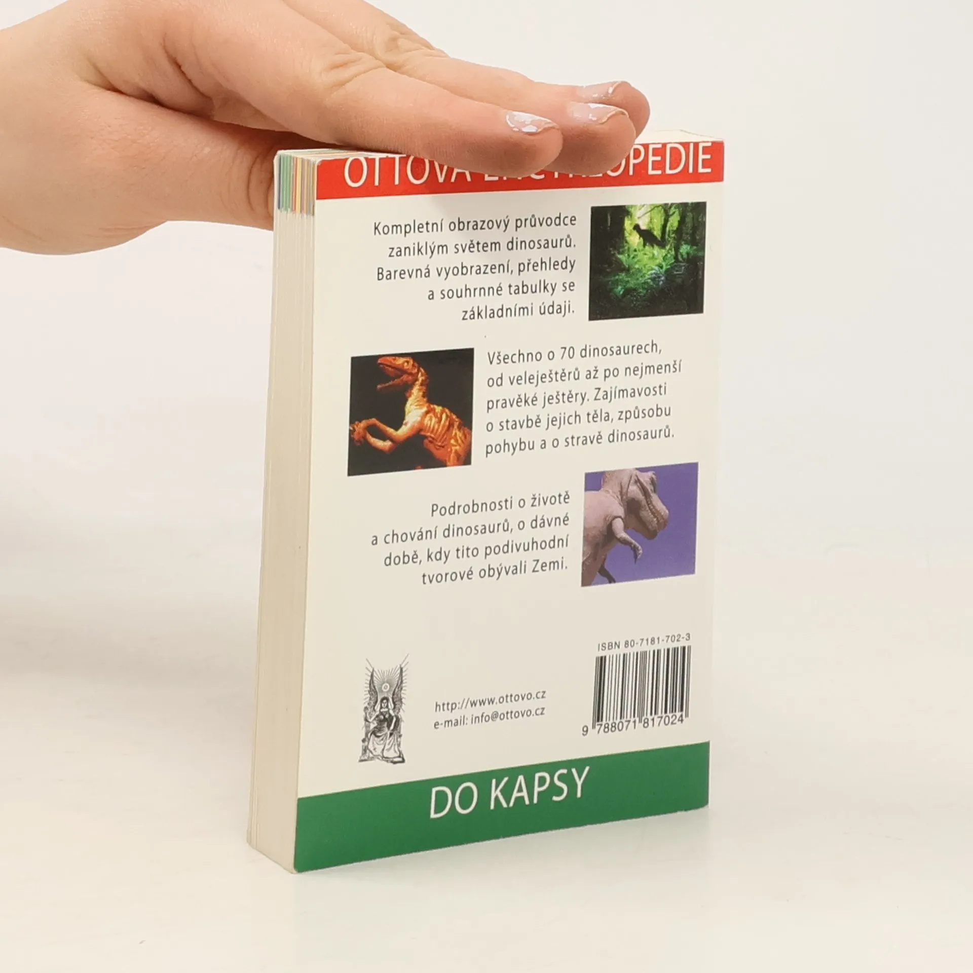 Encyklopedický popis dinosaurů, od býložravých až po masožravce, mapky území jejich pobytu, složení potravy, velikost, a jiné. To vše v kapesním vydání.