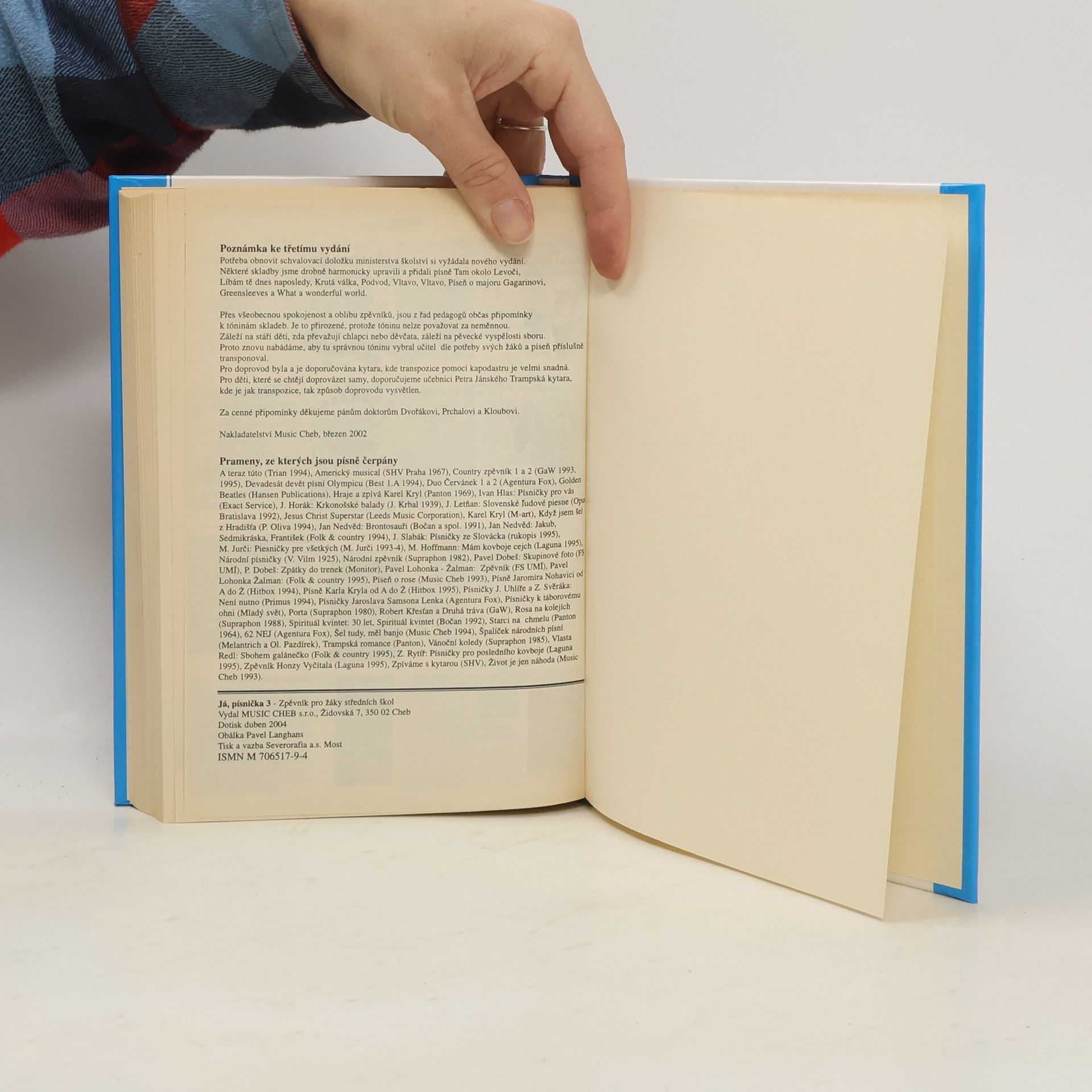 Zpěvník pro žáky středních škol poskytuje bohatý průřez českou i světovou hudbou. Obsahuje koledy, lidové písně, trampské (folk&country) písně, výběr z popu, rocku a jazzu, operetní, muzikálové, filmové či divadelní skladby, klasické písně a na závěr hymny šesti států. Doporučený doprovod - kytara.