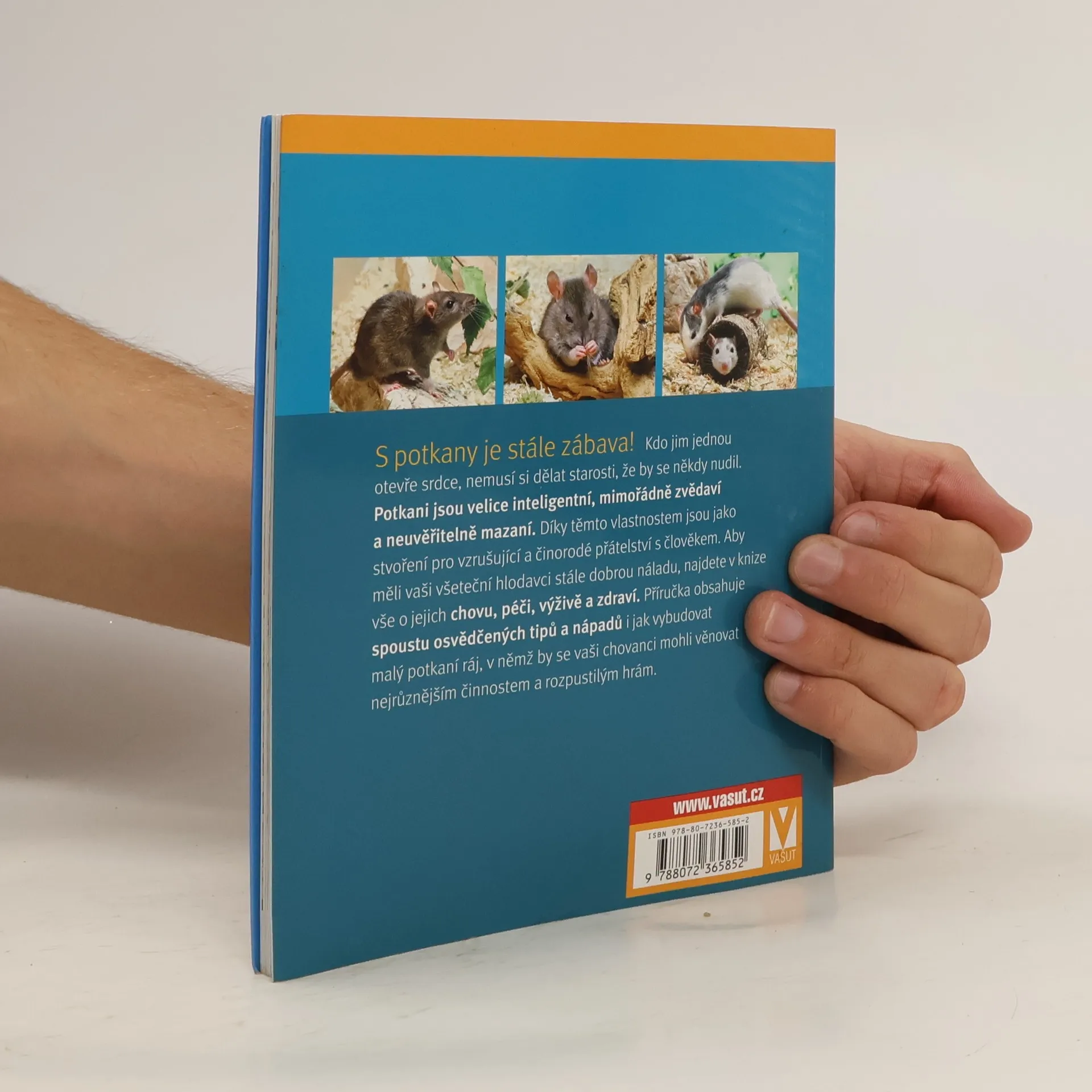 S potkany je stále zábava! Kdo jim jednou otevře srdce, nemusí si dělat starosti, že by se někdy nudil. Potkani jsou velice inteligentní, mimořádně zvědaví a neuvěřitelně mazaní. Díky těmto vlastnostem jsou jako stvoření pro vzrušující a činorodé přátelství s člověkem. Aby měli vaši všeteční hlodavci stále dobrou náladu, najdete v knize vše o jejich chovu, péči, výživě a zdraví. Příručka obsahuje i spoustu osvědčených tipů a nápadů jak vybudovat malý potkaní ráj, v němž by se vaši chovanci mohli věnovat nejrůznějším činnostem a rozpustilým hrám.