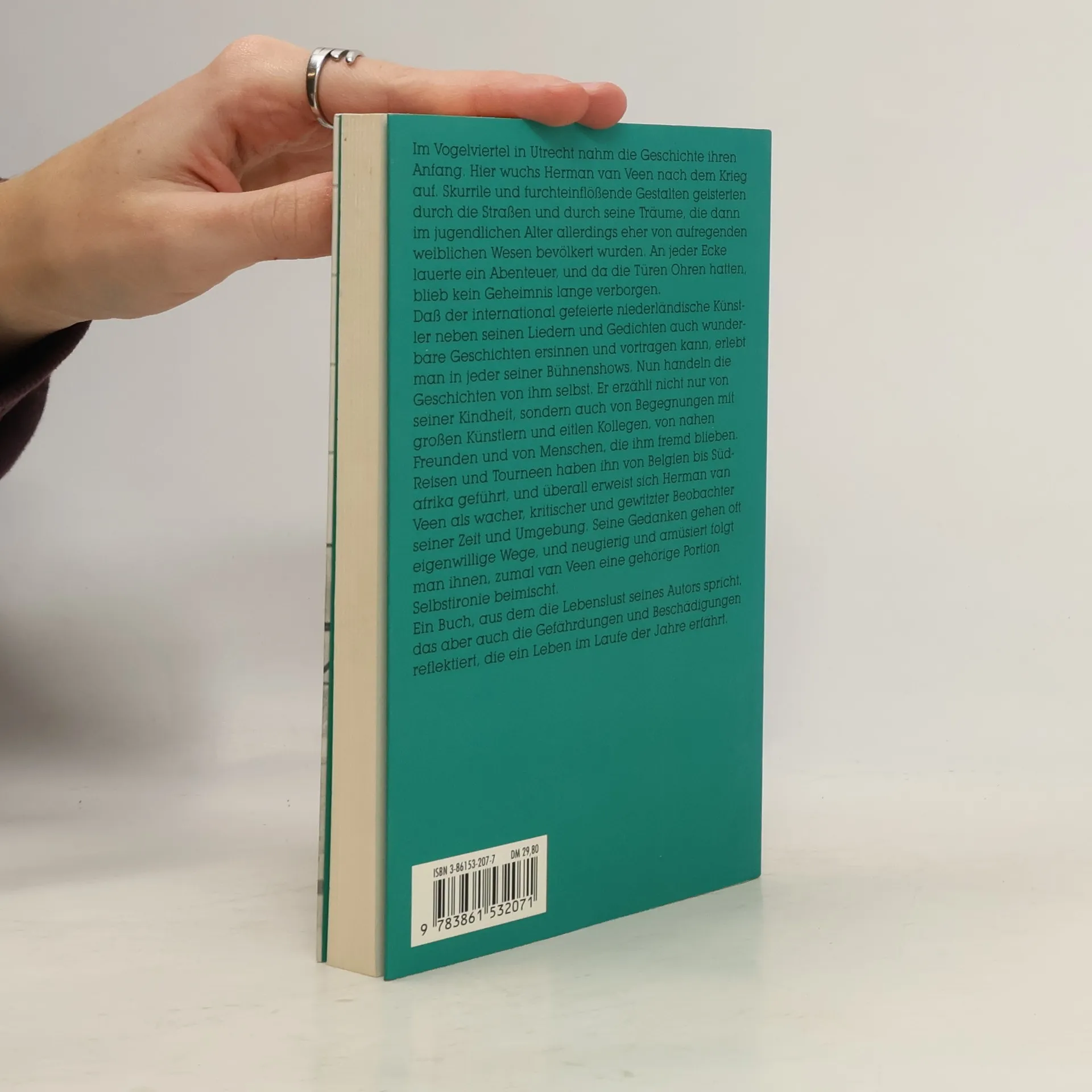 Im Vogelviertel in Utrecht nahm die Geschichte ihren Anfang. Hier wuchs Herman van Veen nach dem Krieg auf. Skurrile und furchteinflößende Gestalten geisterten durch die Straßen und durch seine Träume, die dann im jugendlichen Alter allerdings eher von aufregenden weiblichen Wesen bevölkert wurden. An jeder Ecke lauerte ein Abenteuer, und da die Türen Ohren hatten, blieb kein Geheimnis lange verborgen. Daß der international gefeierte niederländische Künstler neben seinen Liedern und Gedichten auch wunderbare Geschichten ersinnen und vortragen kann, erlebt man in jeder seiner Bühnenshows. Nun handeln die Geschichten von ihm selbst. Er erzählt nicht nur von seiner Kindheit, sondern auch von Begegnungen mit großen Künstlern und eitlen Kollegen, von nahen Freunden und von Menschen, die ihm fremd blieben. Reisen und Tourneen haben ihn von Belgien bis Südafrika geführt, und überall erweist sich Herman van Veen als wacher, kritischer und gewitzter Beobachter seiner Zeit und Umgebung. Seine Gedanken gehen oft eigenwillige Wege, und neugierig und amüsiert folgt man ihnen, zumal van Veen eine gehörige Portion Selbstironie beimischt. Ein Buch, aus dem die Lebenslust seines Autors spricht, das aber auch die Gefährdungen und Beschädigungen reflektiert, die ein Leben im Laufe der Jahre erfährt.