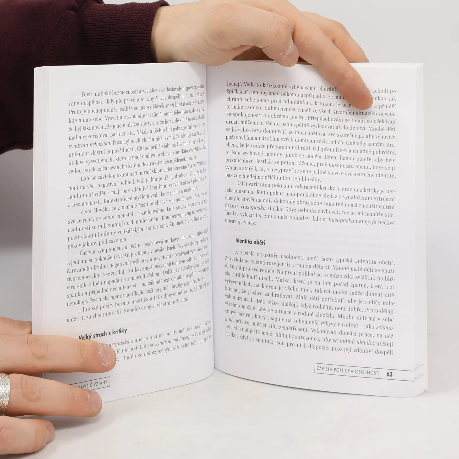 Léčba a uzdravení závislé poruchy osobnosti Závislá porucha osobnosti se vyznačuje zvýšenou potřebou závislosti na druhých lidech, neschopností osamostatnění, nízkým sebehodnocením či nepřiměřenými obavami z opuštění. Tato porucha je podle odborníků mnohem rozšířenější, než se dříve soudilo, a vede často k různým formám závislého chování, psychosomatickým onemocněním, depresím nebo dotyčného dostává často do role týraného a zneužívaného člověka. Autor popisuje na pozadí grimovské pohádky Husopaska to, jak k chorobné závislosti dochází a jaké charakteristické formy na sebe může brát. Citlivě objasňuje, jak může emocionální zneužívání v rodinách vést k masivnímu narušení pocitu vlastní hodnoty, a ukazuje, jak může dojít u dotyčného člověka k osvobození a uzdravení.