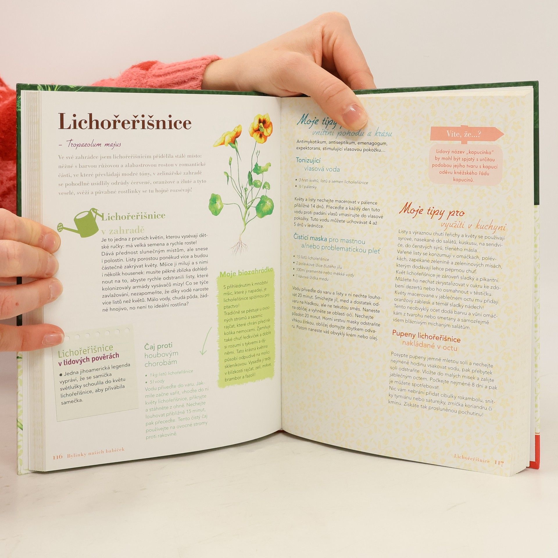Využijte kouzla a síly přírody, a vneste je do svého života! Tato krásná ilustrovaná kniha přináší nejen estetický zážitek, ale hlavně stovky zajímavých rad a tipů, jak využít i ty nejběžnější rostlinky, ovoce či zeleninu pro zdraví, krásu nebo zpestření domácí kuchyně. Naleznete zde recepty pro hedvábnou pleť, zdravé vlasy, klidný spánek, ale dokonce i návody, jak z bylinek uvařit postřiky proti hmyzu či lahodné likéry.