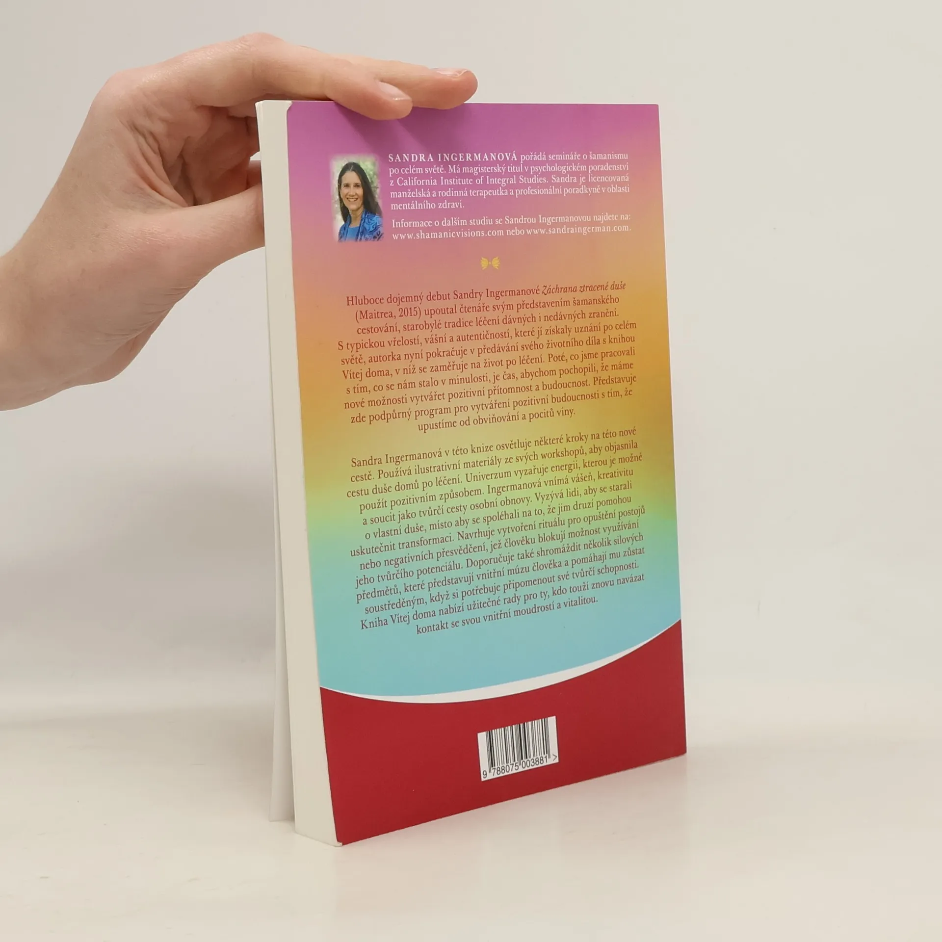 Hluboce dojemný debut Sandry Ingermanové Záchrana ztracené duše (Maitrea, 2015) upoutal čtenáře šamanským cestováním a léčením zranění. Autorka nyní pokračuje s knihou Vítej doma, zaměřenou na život po léčení. Po zpracování minulosti je čas na vytváření pozitivní přítomnosti a budoucnosti. Ingermanová představuje podpůrný program, který se vyhýbá obviňování a pocitům viny, a osvětluje kroky na nové cestě. Používá materiály ze svých workshopů k objasnění cesty duše domů po léčení. Věří, že univerzum vyzařuje energii, kterou lze pozitivně využít. Vášeň, kreativita a soucit jsou podle ní klíčové pro osobní obnovu. Vyzývá, aby lidé pečovali o své duše a nespoléhali se na ostatní pro transformaci. Navrhuje rituály k opuštění negativních postojů, které blokují tvůrčí potenciál, a doporučuje shromáždit silové předměty, které představují vnitřní múzu a pomáhají udržet soustředění na tvůrčí schopnosti. Kniha nabízí užitečné rady pro ty, kdo chtějí znovu navázat kontakt se svou vnitřní moudrostí a vitalitou.