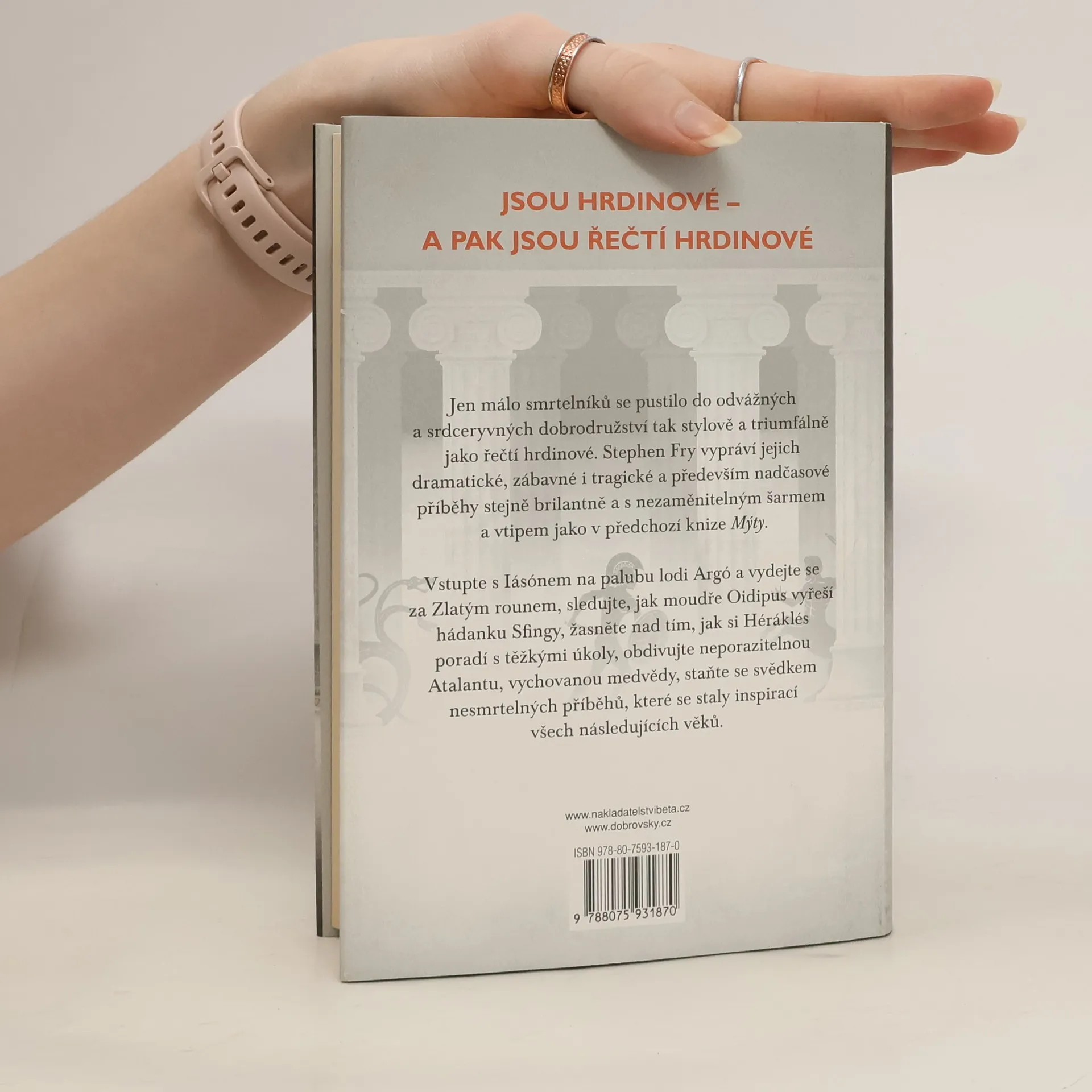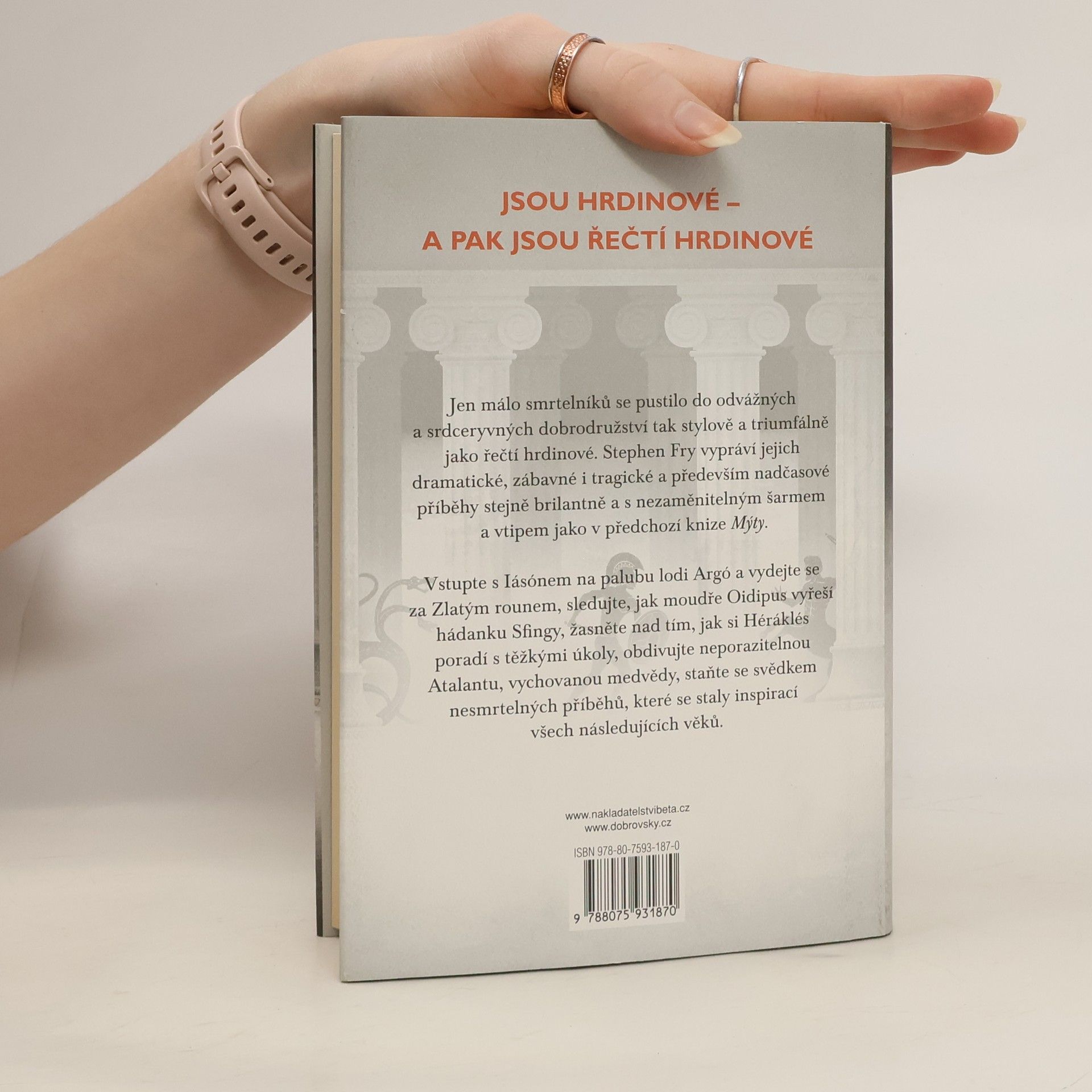 Bohové, příšery, mise… Jen málo smrtelníků se pustilo do odvážných a srdceryvných dobrodružství tak stylově a triumfálně jako řečtí hrdinové. Stephen Fry vypráví jejich dramatické, zábavné i tragické a především nadčasové příběhy stejně brilantně a s nezaměnitelným šarmem a vtipem jako v předchozí knize Mýty. Vstupte s Iásónem na palubu lodi Argo a vydejte se za Zlatým rounem, sledujte, jak moudře Oidipus vyřeší hádanku Sfingy, žasněte nad tím, jak si Héráklés poradí s těžkými úkoly, obdivujte neporazitelnou Atalantu, vychovanou medvědy, staňte se svědkem nesmrtelných příběhů, které se staly inspirací všech následujících věků.
