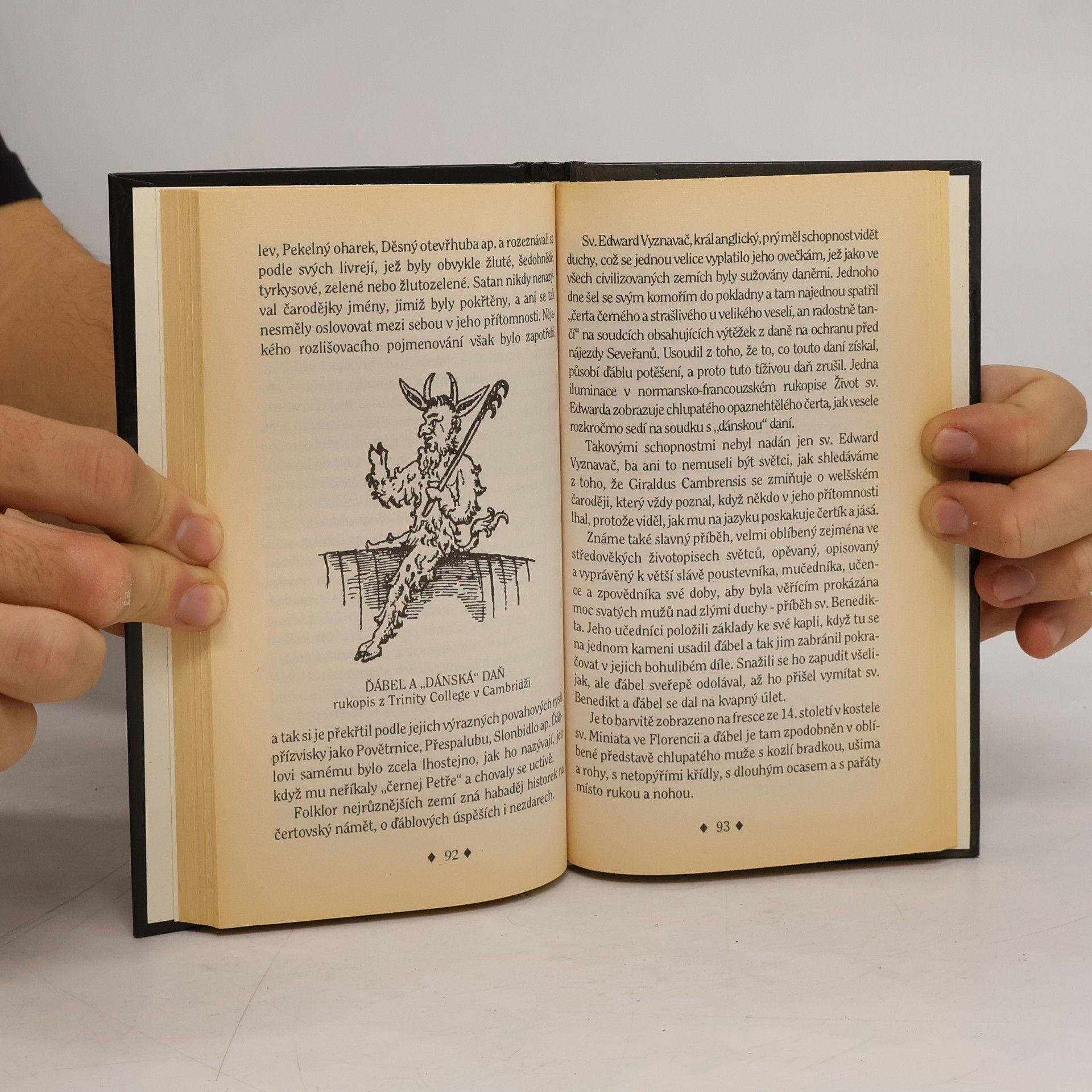 Když tato knížka vyšla poprvé v Londýně roku 1904, vzbudila v britské veřejnosti na jedné straně jásavé nadšení, na straně druhé nerudné pohoršení, v církevních kruzích pak nejisté rozpaky. Církev ve své praxi ani ve svých spisech nikdy nepopírala existenci ďáblů a čertů a jejich pohlavára Satana, ba s nimi soustavně pracovala, avšak sluší se o nich pojednávat jako o předmětu vědeckého bádání? Autor J. Charles Wall to vyřešil po svém: shromáždil si hojnost důkazného materiálu a napsal o těchto vynalézavých a neúnavných pokušitelích lidstva deset kapitol plných poučného i rozmarného čtení doplněného dobovými ilustracemi. Byl kdys svatý Dunstan v Břečťanové věži, křivule a tyglík vedle výhně leží, když tam vlezl čert a chtěl si ztropit žert přestrojen za dívku půvabnou a svěží. Vy se ptáte jak a co se stalo pak? Dunstan popad kleště a chňap ho za frňák, neboť nešukal tak jako jiní kněží.... celý text
