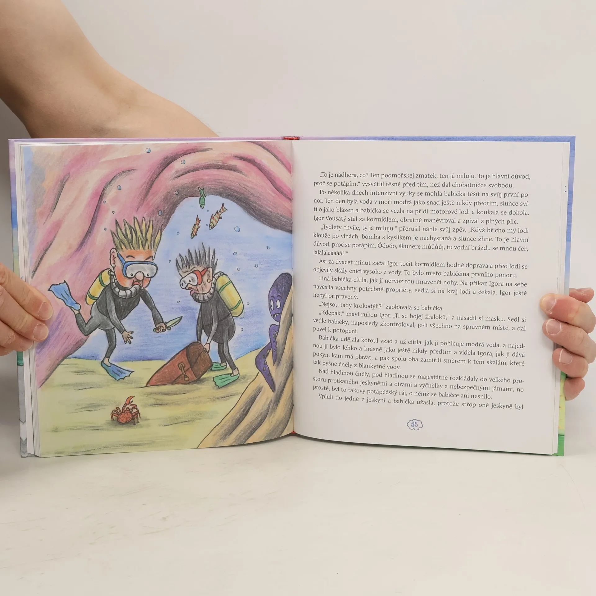 Většina babiček jsou elegantní, upravené dámy, které mají vždy doma uklizeno, napečeno a kdykoli pohlídají vnoučata. Babička z naší knížky je ale úplně jiná: nevaří, nepere, neuklízí, nehlídá vnoučata, i když je má ráda. Místo toho si plní svá dávná přání, která celý život střádala do starého škapulíře. Projede se v superrychlém autě jednoho milionáře, proletí v baloně, vyleze na nejvyšší horu světa, naučí se lyžovat, surfovat na internetu, zatančí si v dešti s psychiatry, zahraje si po dlouhých letech na honěnou uprostřed přírody, a vždycky se jí přihodí ještě něco docela nečekaného!