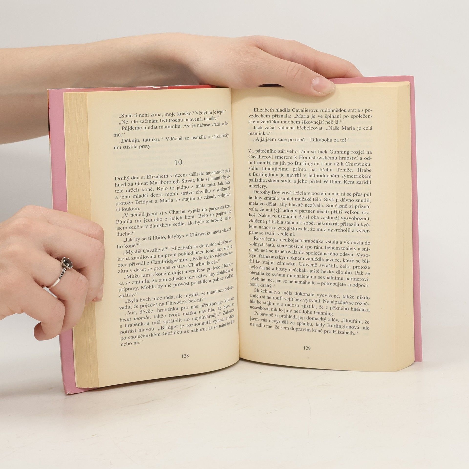 Elizabeth Gunningová, obdivovaná irskou smetánkou pro svou krásu, však není, kdo se zdá být. Je obyčejnou ženou avšak s neobyčejným zjevem. A řízena svou matkou se chystá v přetvářce pokračovat a jako vichřice si podmanit i Londýn. Zlatovlasé Elizabeth s fialkovýma očima padají muži k nohám, ale jen jeden si podmanil její srdce, vévoda z Agryll. Ale podlehnout mu by bylo nebezpečné, protože on jediný také zná její nejhlubší tajemství a navíc ví, jak v ní vzbudit vášeň.
