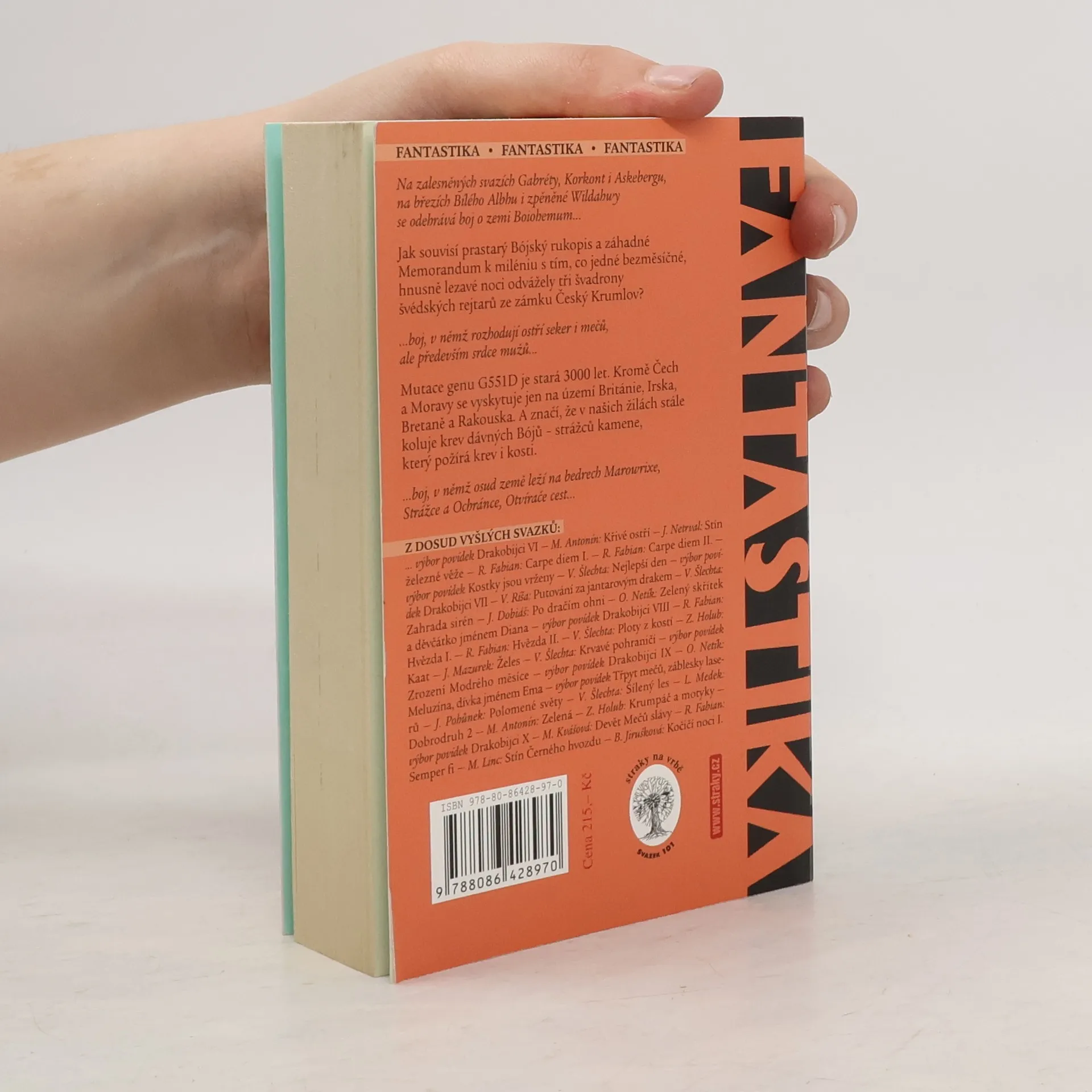 Na zalesněných svazích Gabréty, Korkont i Askebergu, na březích Bílého Albhu i zpěněné Wildahwy se odehrává boj o zemi Boiohemum... Jak souvisí prastarý Bójský rukopis a záhadné Memorandum k miléniu s tím, co jedné bezměsíčné, hnusně lezavé noci odvážely tři švadrony švédských rejtarů ze zámku Český Krumlov? ...boj, v němž rozhodují ostří seker i mečů, ale především srdce mužů... Mutace genu G551D je stará 3000 let. Kromě Čech a Moravy se vyskytuje jen na území Británie, Irska, Bretaně a Rakouska. A značí, že v našich žilách stále koluje krev dávných Bóju - strážců kamene, který požírá krev i kosti. ...boj, v němž osud země leží na bedrech Marowrixe, Strážce a Ochránce, Otvírače cest...